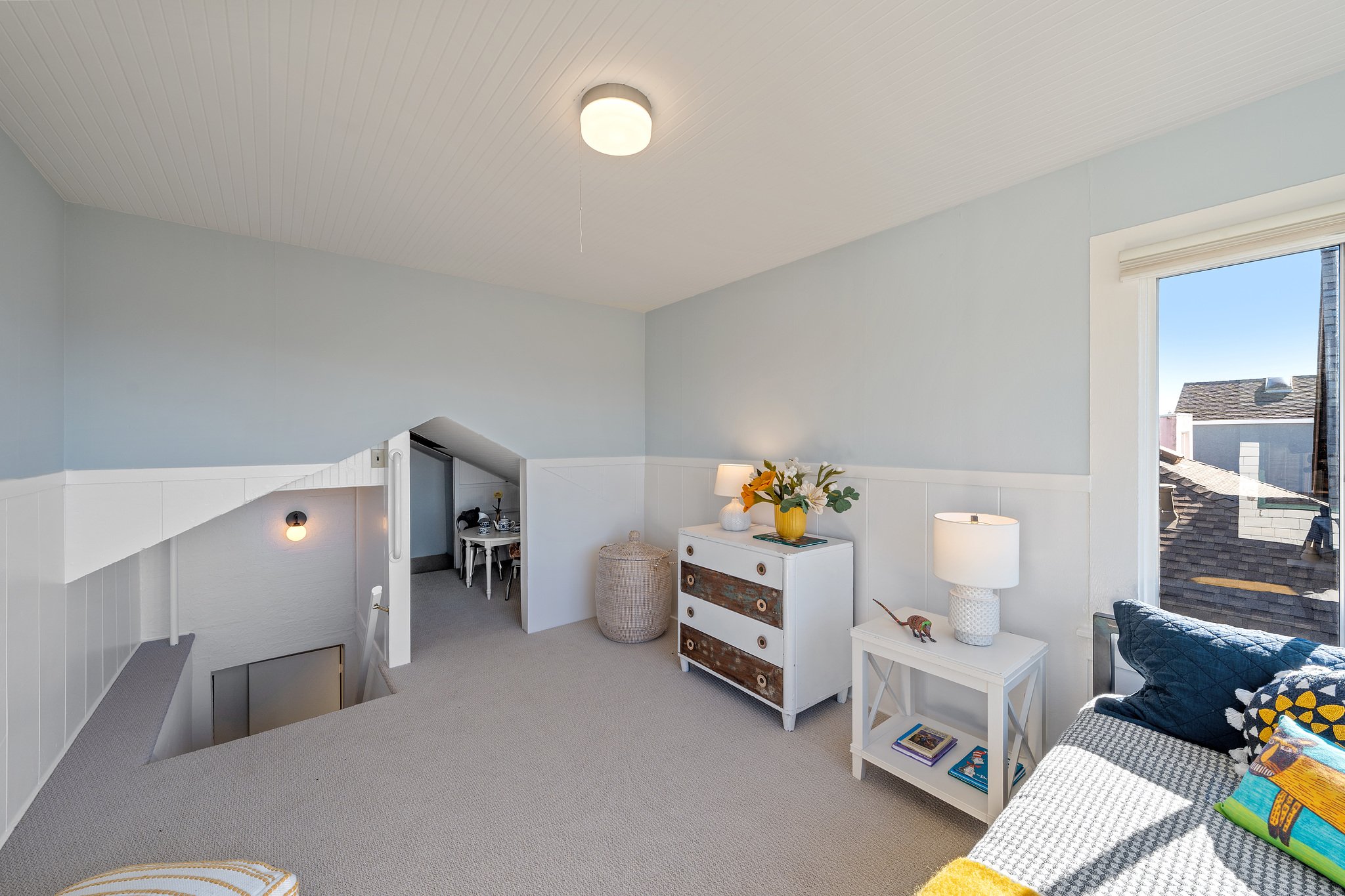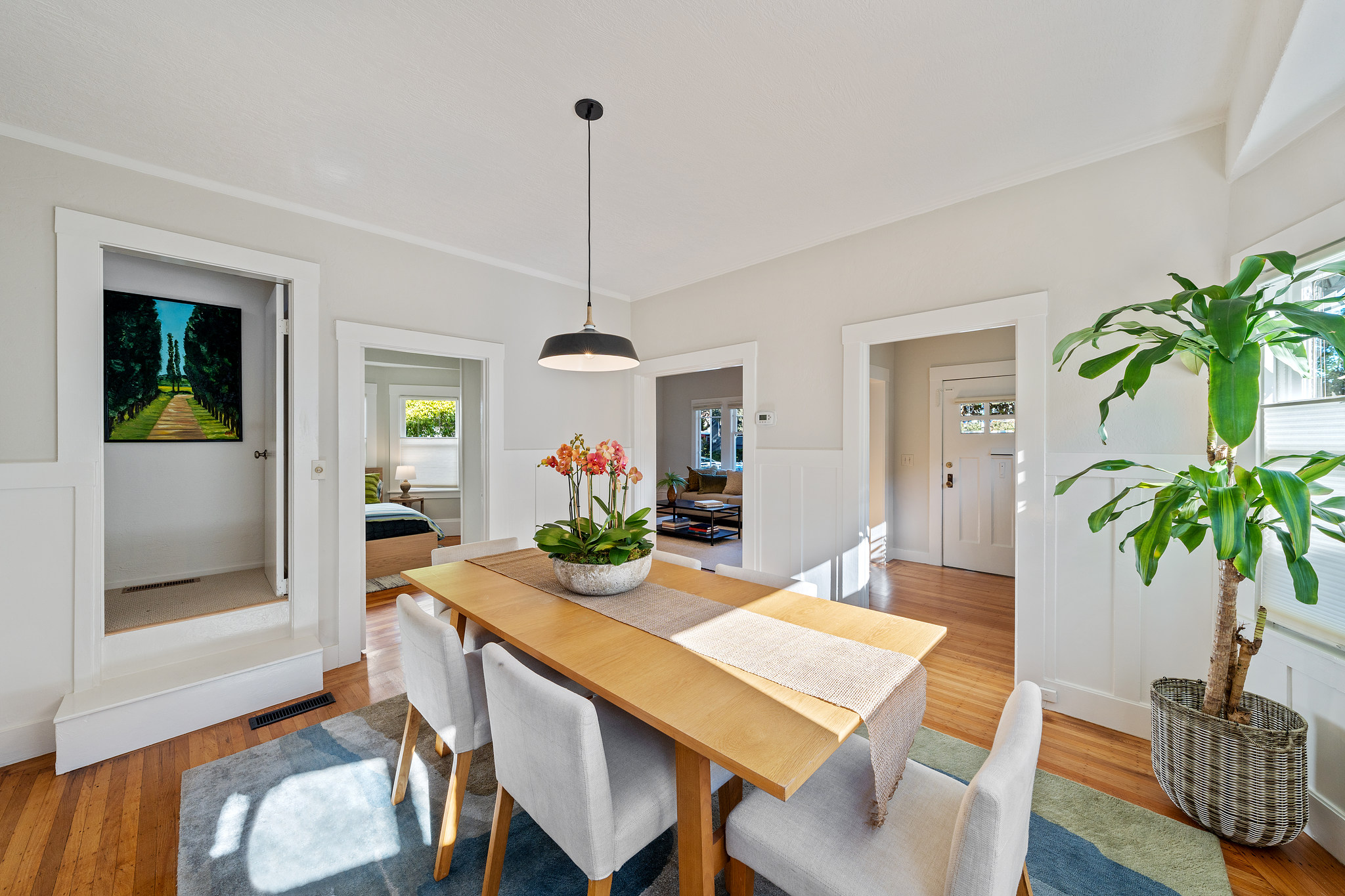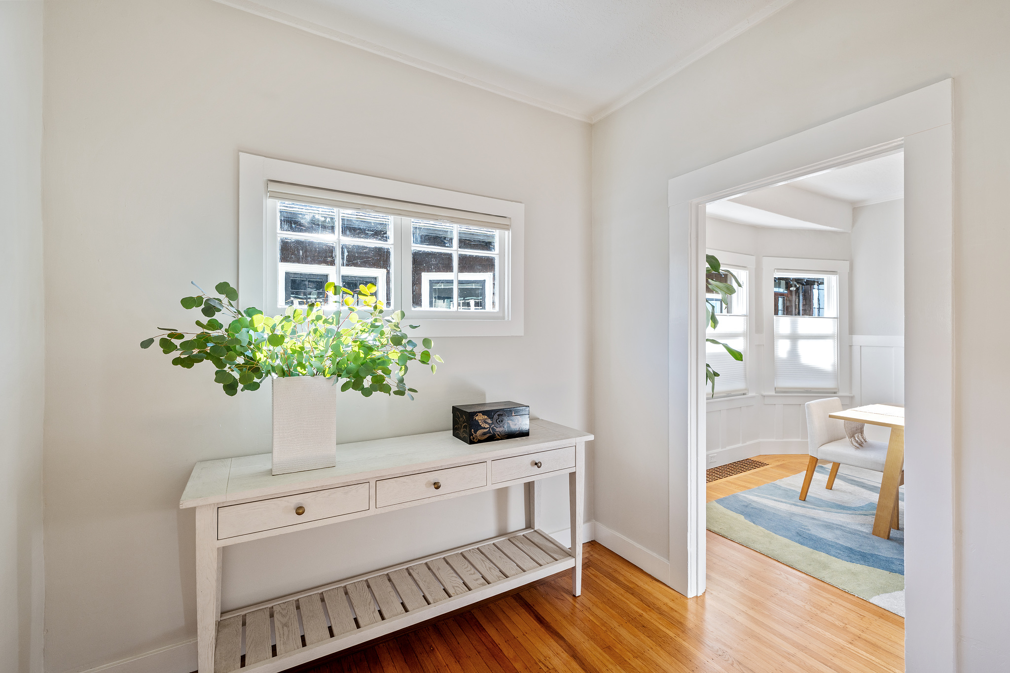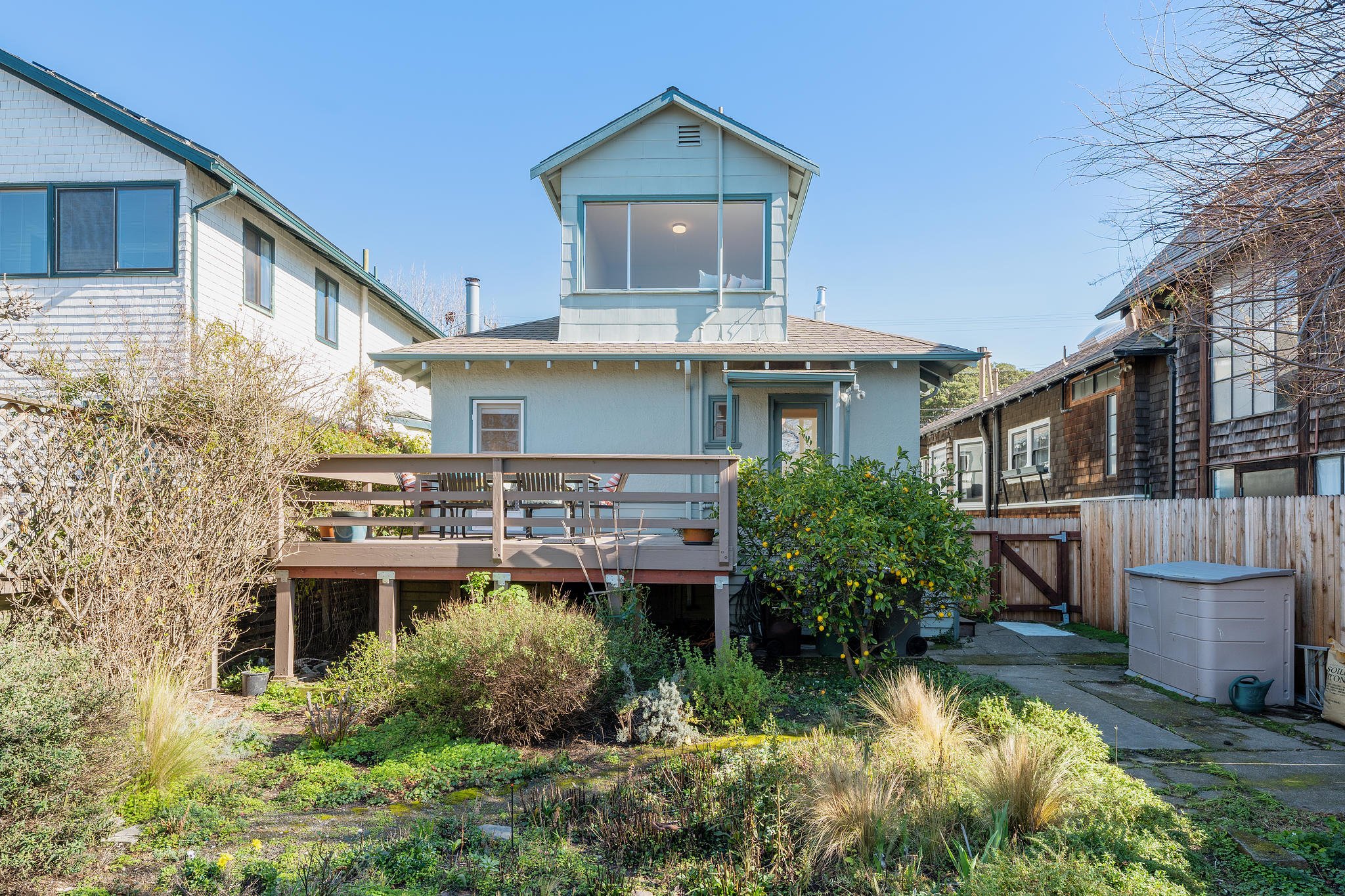 This delightful, light-filled circa 1910 home is located on a quiet tree-lined street in one of the most desirable neighborhoods in Albany. With its large welcoming porch, gracious foyer, built-in cabinets, wainscoting and handsome fireplace, it retains the charm of the turn-of-the-century, while the updated kitchen with quartz counters, maple cabinets, subway tiles and modern stainless steel appliances shows it’s readily adapted to 21st century life. There are 2 bedrooms with 2 baths on the main level, and upstairs, a loft bedroom with stunning views out to the Bay and Mount Tamalpais. Both the kitchen and main bedroom open to a large sunny backyard deck and garden planted to attract pollinators, a perfect spot for enjoying the outdoors. Well-located near the Gilman and Hopkins/Monterey Northbrae shopping districts, as well as vibrant Solano Avenue, the North Berkeley Library, local schools, and Jewel’s Terrace Park.