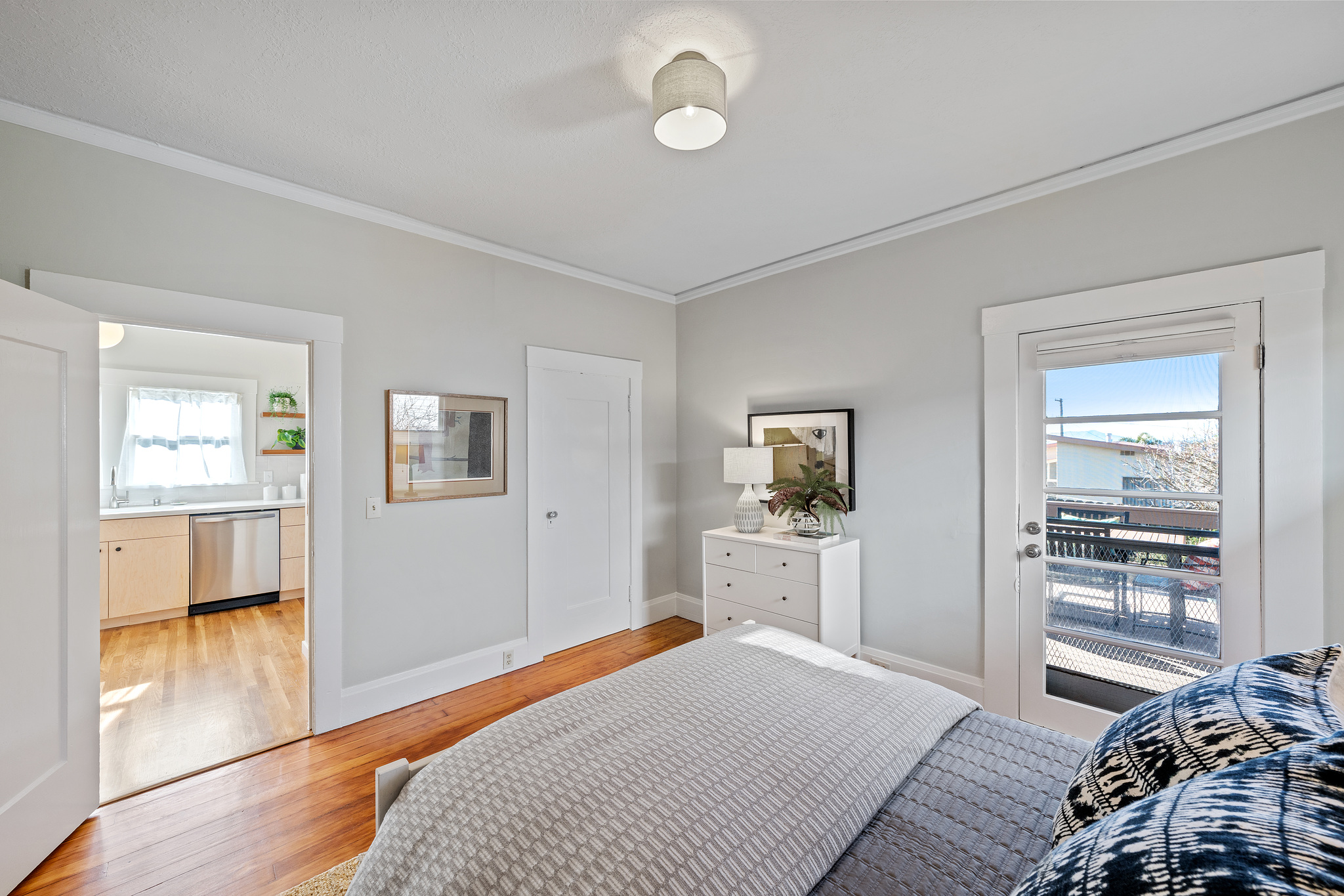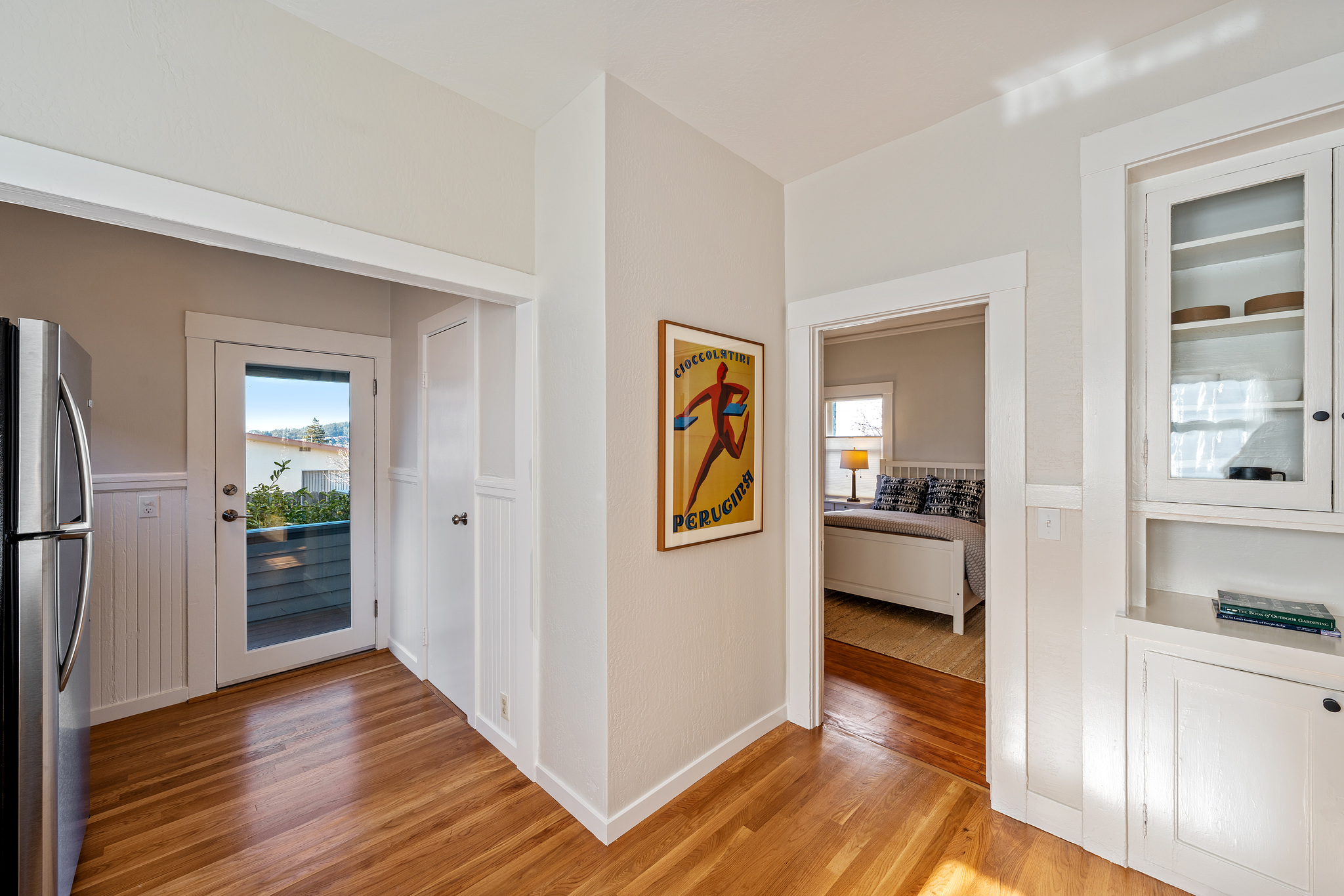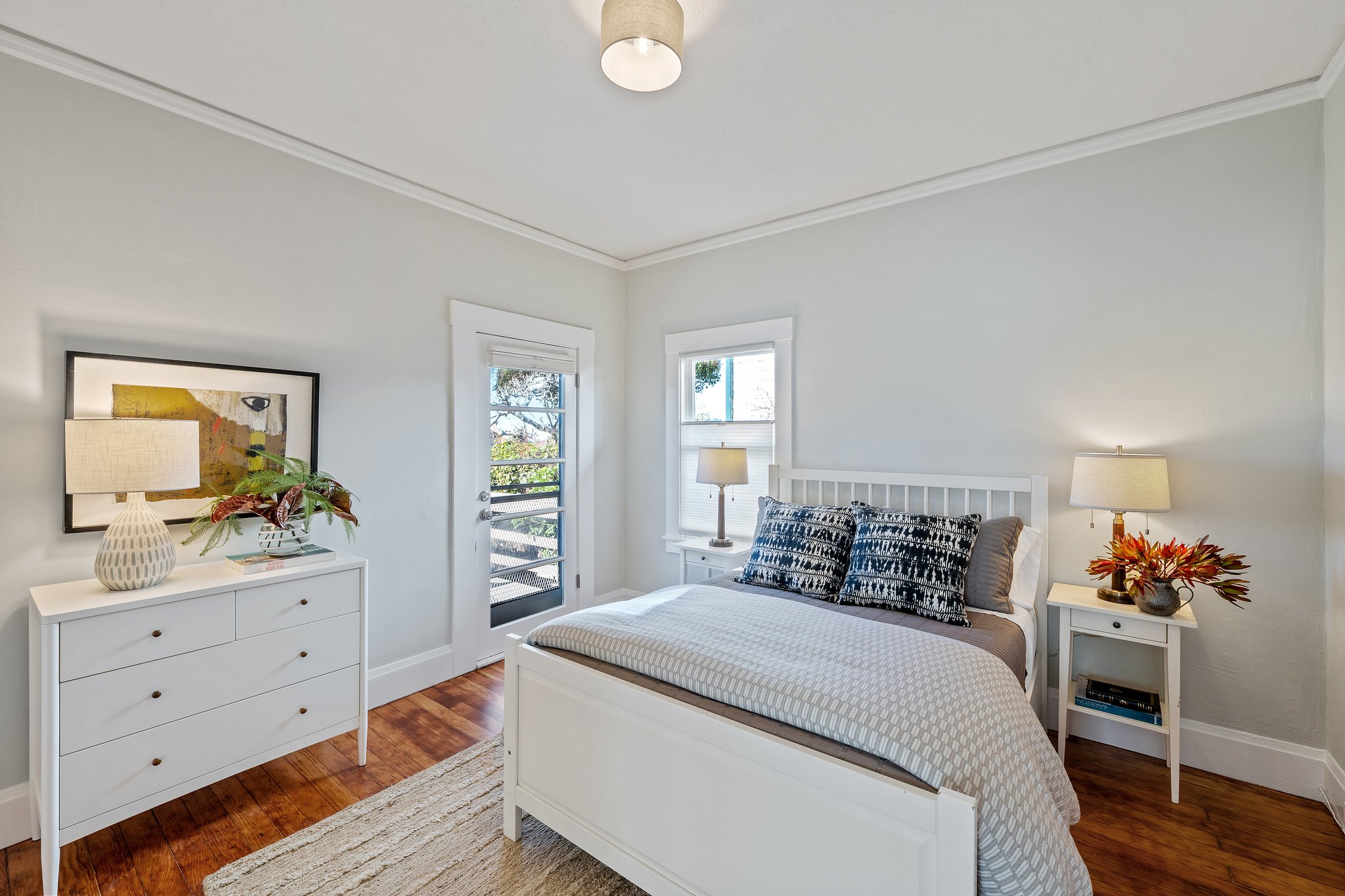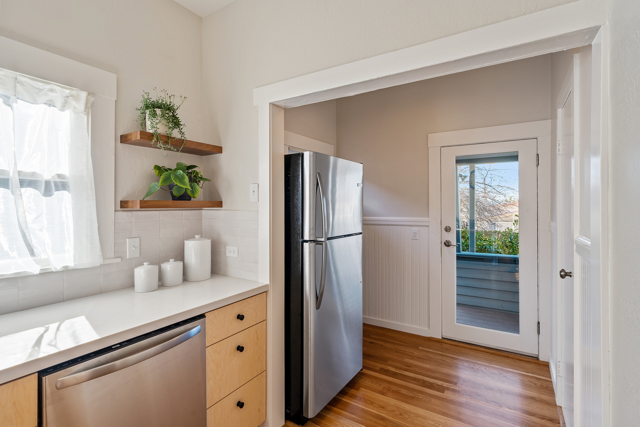 This delightful, light-filled circa 1910 home is located on a quiet tree-lined street in one of the most desirable neighborhoods in Albany. With its large welcoming porch, gracious foyer, built-in cabinets, wainscoting and handsome fireplace, it retains the charm of the turn-of-the-century, while the updated kitchen with quartz counters, maple cabinets, subway tiles and modern stainless steel appliances shows it’s readily adapted to 21st century life. There are 2 bedrooms with 2 baths on the main level, and upstairs, a loft bedroom with stunning views out to the Bay and Mount Tamalpais. Both the kitchen and main bedroom open to a large sunny backyard deck and garden planted to attract pollinators, a perfect spot for enjoying the outdoors. Well-located near the Gilman and Hopkins/Monterey Northbrae shopping districts, as well as vibrant Solano Avenue, the North Berkeley Library, local schools, and Jewel’s Terrace Park.