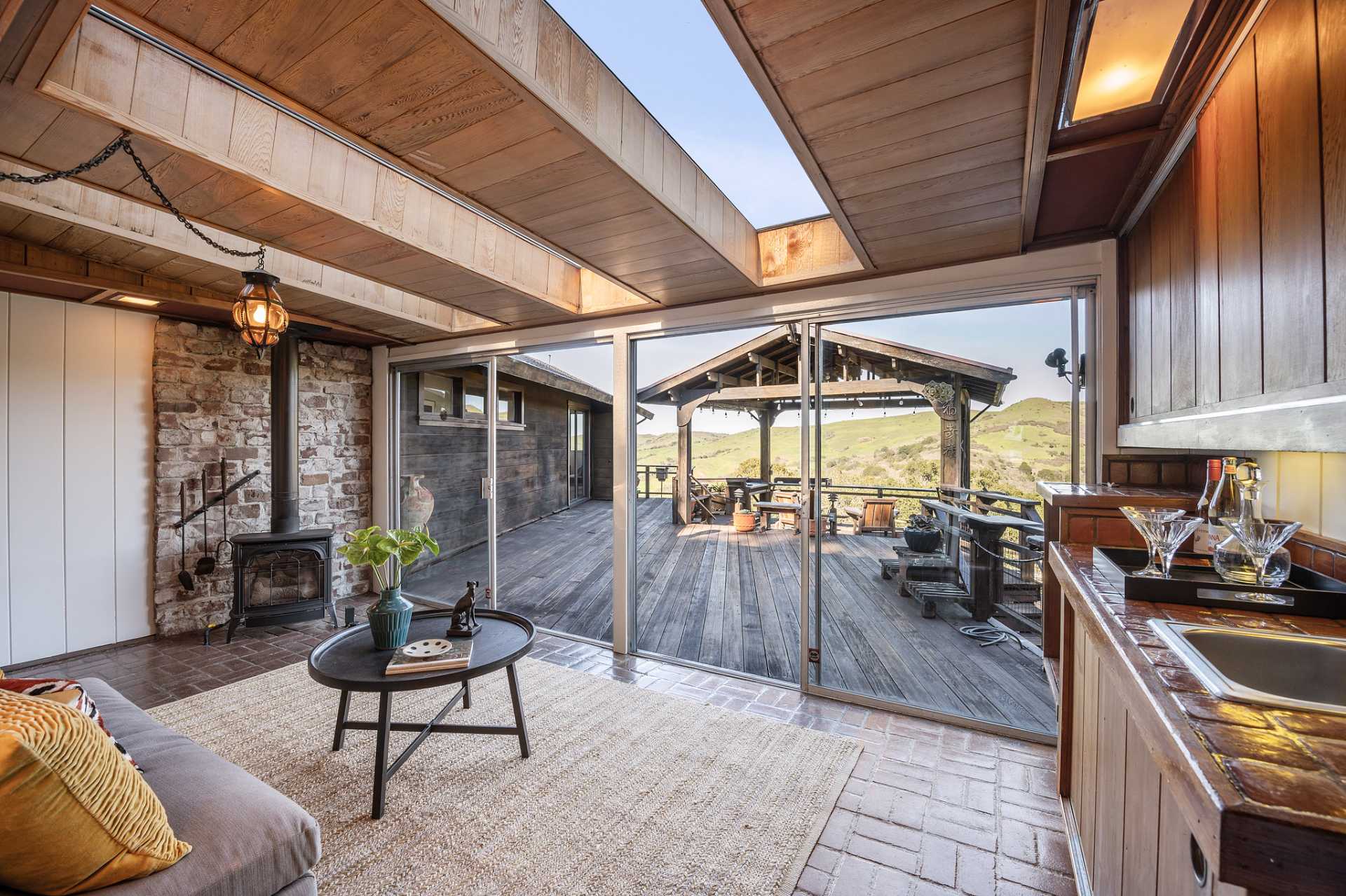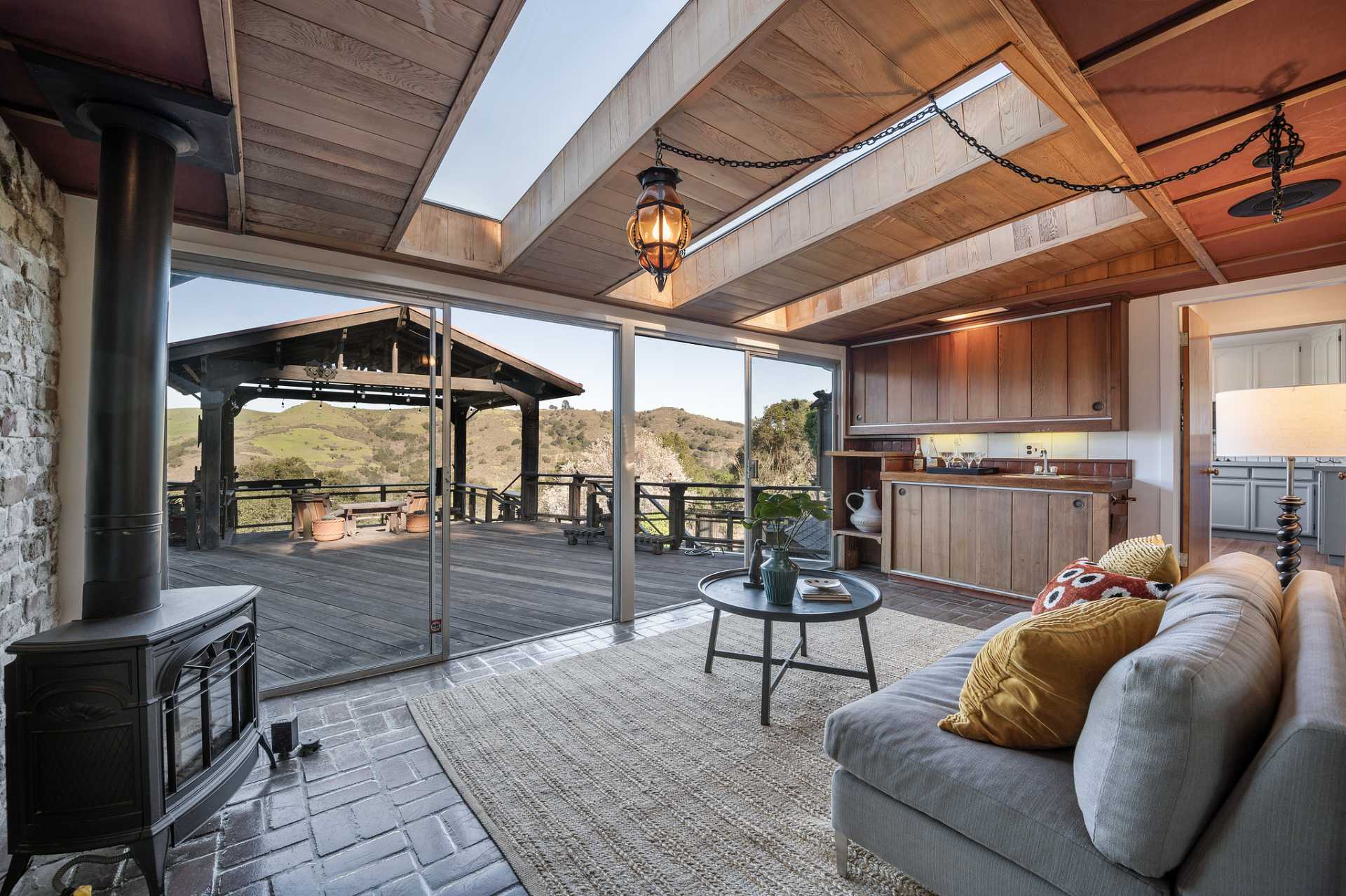 Watch the hawks soar over the rolling hills of Tilden Park and Wildcat Canyon from this unique and magical home. Located at the end of a private road, this one-of-a-kind property is steeped in local history. This private section of Purdue Avenue was once owned by legendary Berkeley architect, Bernard Maybeck, who sold the parcel to the original owners. As one of the first homes built after the subdivision map was completed in 1947, this house was here when the road was still an unpaved cow path, with every purchaser literally a pioneer of the hilltop. Bernard and his wife, Annie, interviewed each prospective home builder, looking for nice young couples who didn’t drink or spend beyond their means, and who promised not to build a white house. Bob and Ollie Shaner passed the test and became one of the first families to have a stake on the wild section of Purdue. Bernard, in his late 80s then, would walk the 3 miles from his home on Buena Vista Drive in Berkeley, often in his trademark sheepskin coat, to check on the building progress and make suggestions. Bob and Ollie raised 3 children here who had the run of the street and walked to school on the trail behind the house. The house has been through several additions since its construction in 1949, but has retained its rustic charm and connection to the hilltop and canyon.