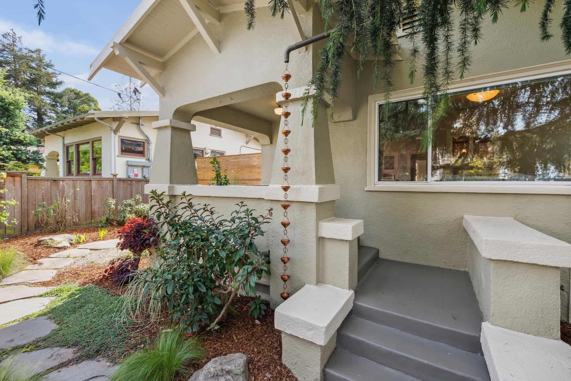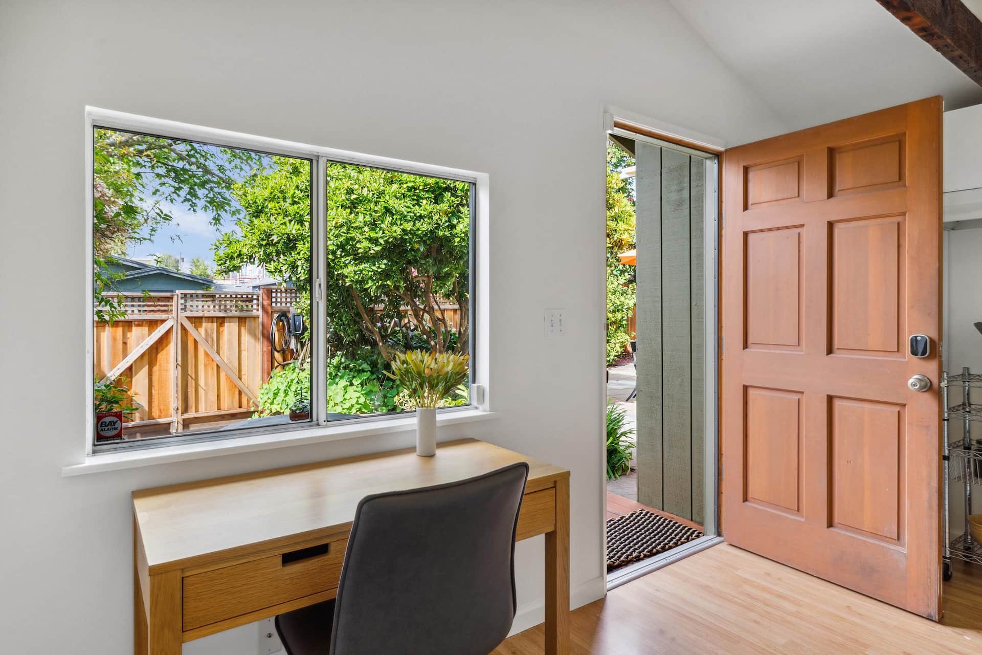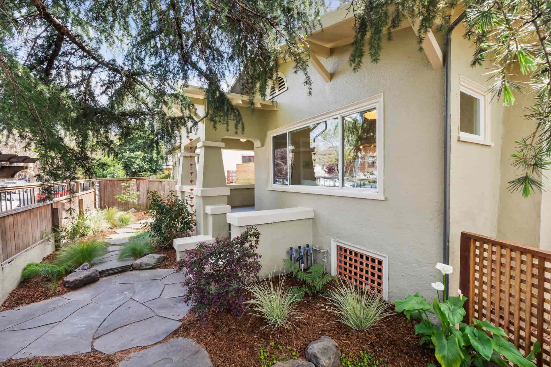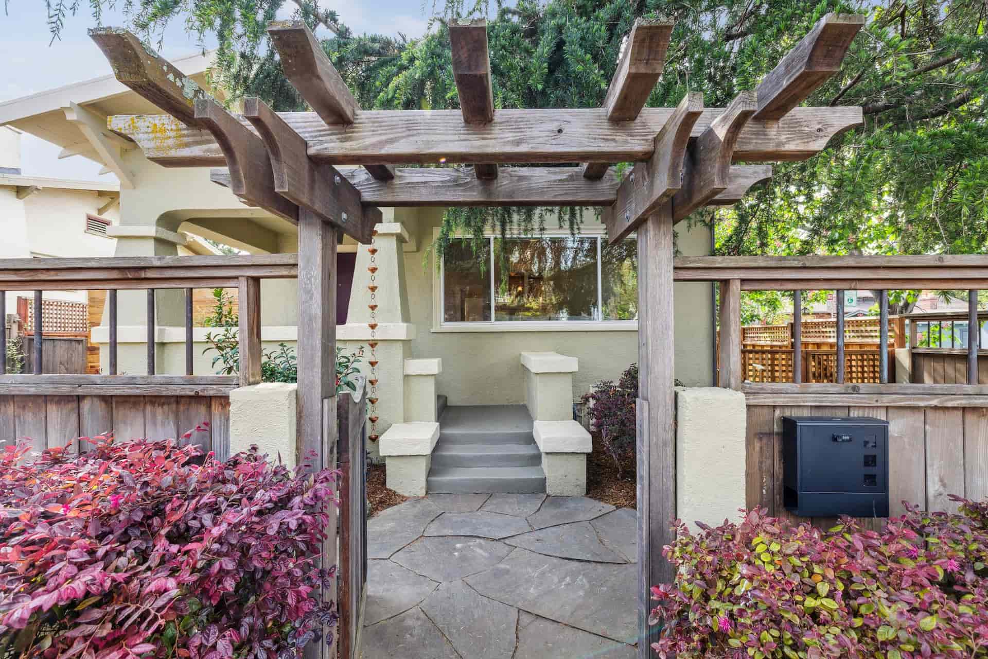Stylish Craftsman with modern upgrades and vintage essence in the heart of Berkeley. A gorgeous single-level 3-bedroom, 2-bath home, with a detached garden structure*, offers a serene retreat in the hub of a vibrant neighborhood. Minutes to the world-renowned University of California at Berkeley, fabulous restaurants, performing arts theaters, and music venues. The nearby North Berkeley BART makes for convenient access to daily activities. Once inside the gate, your oasis awaits, where professionally designed gardens create private and peaceful surroundings. The covered porch, with its graceful arches, beautifully frames the garden. Once inside, a roomy foyer leads to a well-lit living room with wall-to-wall picture windows, a brick-faced fireplace, and built-in bookshelves. The open-concept dining room and chef’s kitchen are well-suited for everyday enjoyment and gatherings. Walnut cabinetry with abundant storage and a built-in desk, designer tile, and skylight add to the functionality of the kitchen. The original leaded-glass built-in cabinets are complemented by the sleek floor-to-ceiling sliding glass doors leading to the deck. The seamless connection to the spacious deck extends the dining area for al fresco dining.