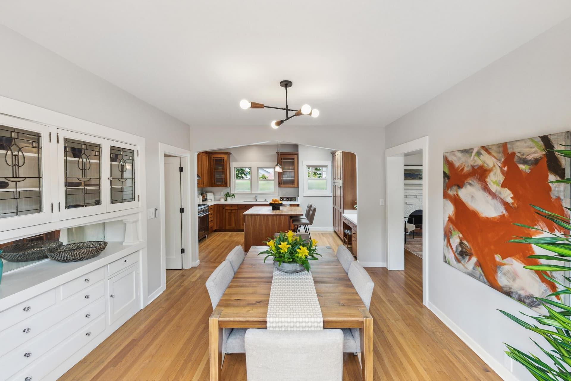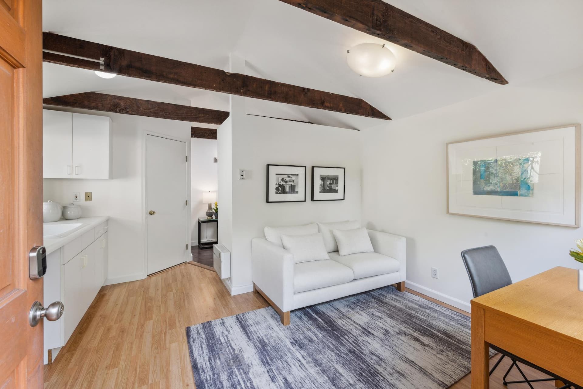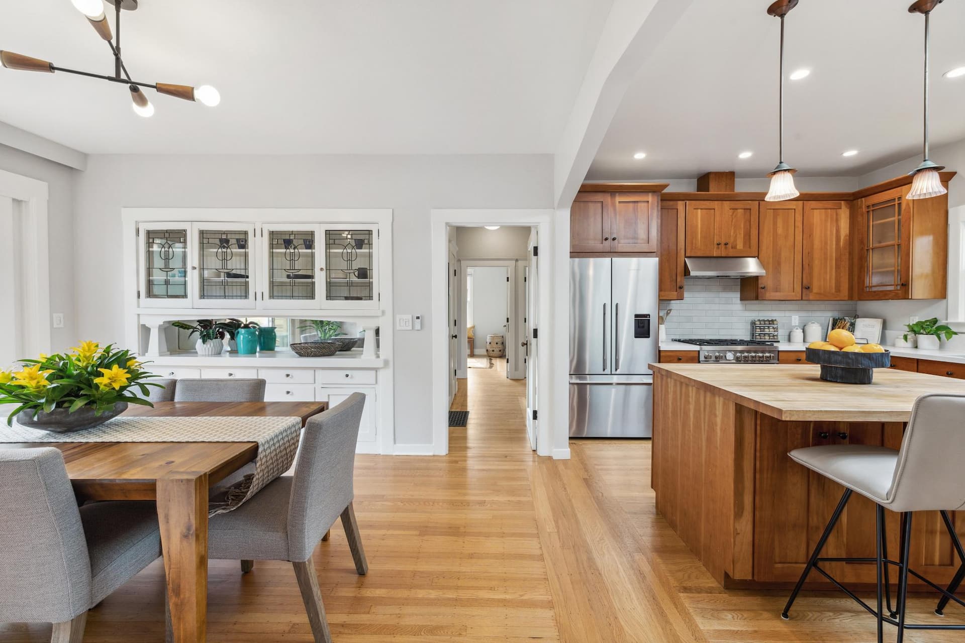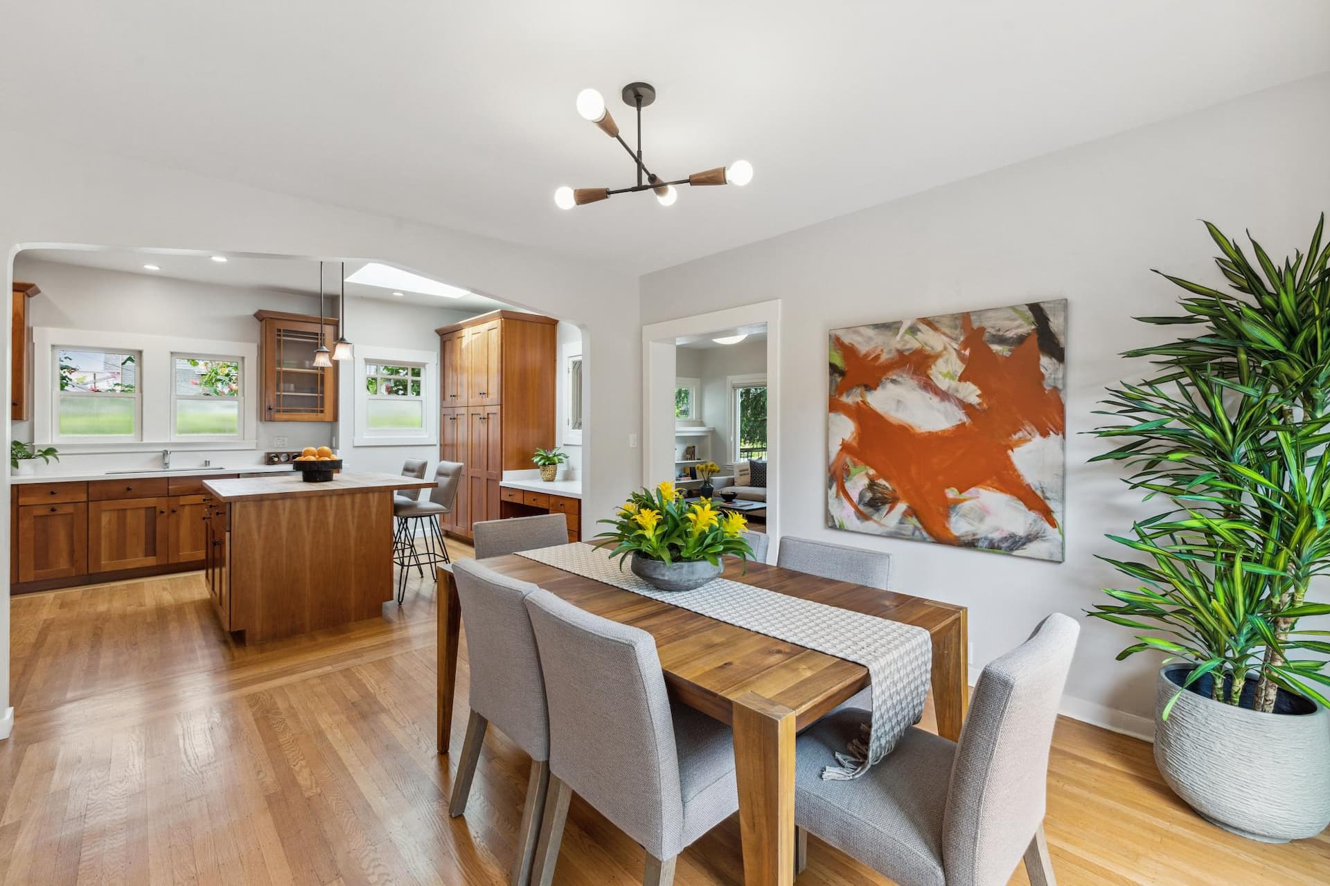 Stylish Craftsman with modern upgrades and vintage essence in the heart of Berkeley. A gorgeous single-level 3-bedroom, 2-bath home, with a detached garden structure*, offers a serene retreat in the hub of a vibrant neighborhood. Minutes to the world-renowned University of California at Berkeley, fabulous restaurants, performing arts theaters, and music venues. The nearby North Berkeley BART makes for convenient access to daily activities. Once inside the gate, your oasis awaits, where professionally designed gardens create private and peaceful surroundings. The covered porch, with its graceful arches, beautifully frames the garden. Once inside, a roomy foyer leads to a well-lit living room with wall-to-wall picture windows, a brick-faced fireplace, and built-in bookshelves. The open-concept dining room and chef’s kitchen are well-suited for everyday enjoyment and gatherings. Walnut cabinetry with abundant storage and a built-in desk, designer tile, and skylight add to the functionality of the kitchen. The original leaded-glass built-in cabinets are complemented by the sleek floor-to-ceiling sliding glass doors leading to the deck. The seamless connection to the spacious deck extends the dining area for al fresco dining.
