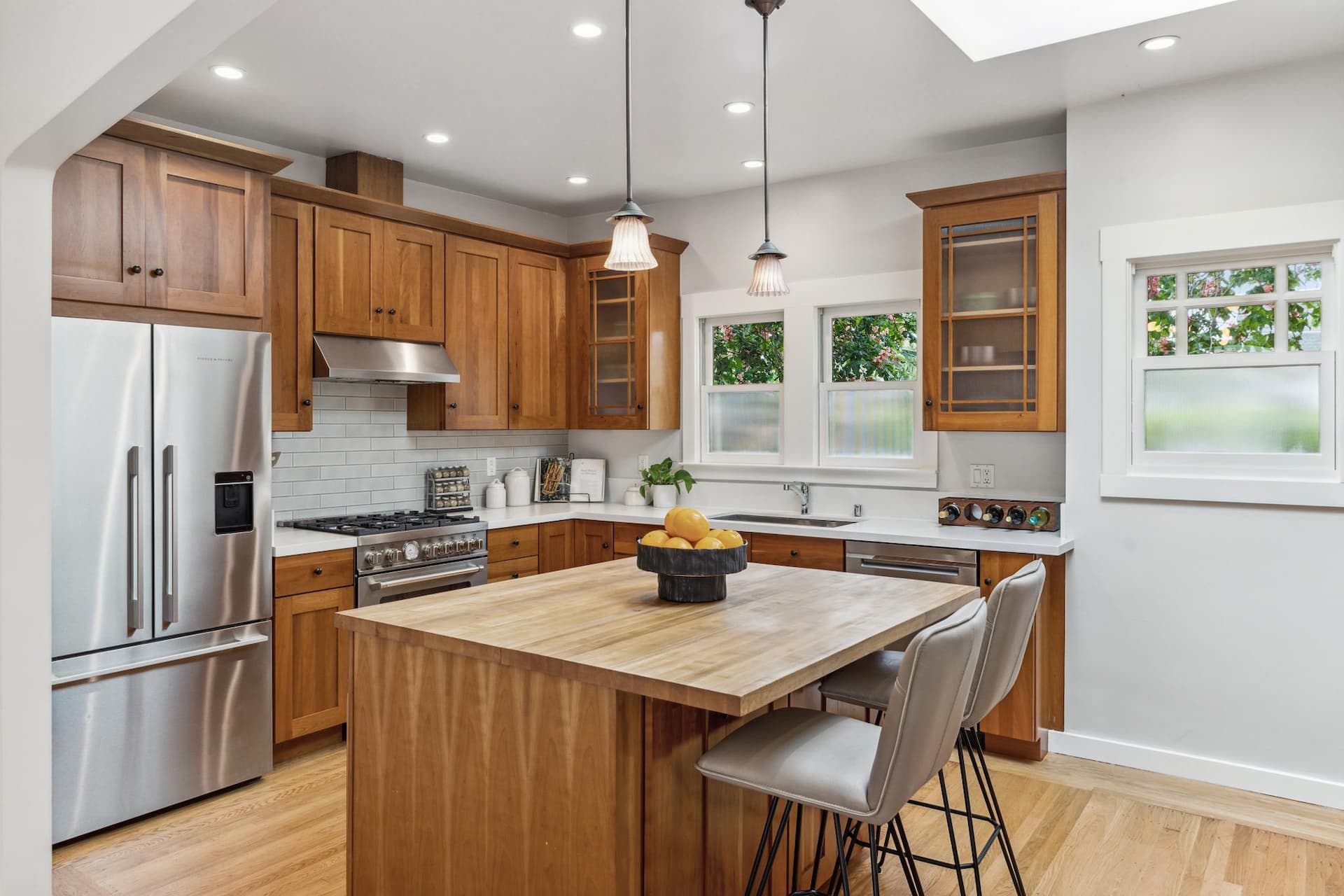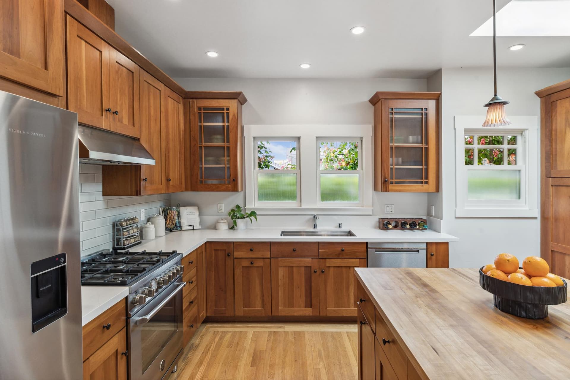 - Newer appliances: Bertazzoni gas range and Fisher Paykel refrigerator
