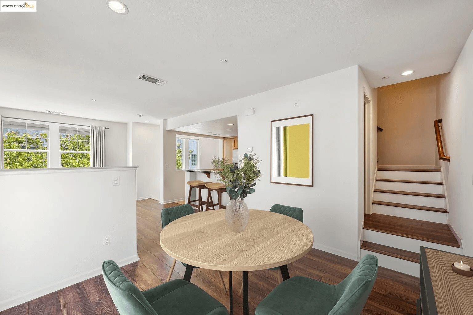 With the Bay Trail at your fingertips, Marina Bay Park just blocks away from the front door, and all that life near the water offers, you’ll never want to leave! This well-appointed 3-story townhouse is built in 2010 and lovingly and meticulously maintained by the same owner from day one. Bright and sunny, the living room is filled with light and hues of sunlit greenery. This fabulous corner unit has an attached garage and tandem 2-car parking with internal access. Up the stairs from the front door, a sunlit living room, open concept kitchen with breakfast bar, and a dining area with a balcony all invite you in for more. On the way upstairs to the bedrooms you’ll find a convenient half bath. Third floor boasts 2 br, and 2 full baths, one en-suite. The Primary suite bath has dual sinks and a separate room for the glass-enclosed shower. With a large walk-in closet organized by California Closets, high ceilings, and clerestory windows, the room is a luxury of light and space. A glass door opening to a private balcony completes the experience. The second br has its own full bath in the hall, stacked W/D in the laundry closet round things out. Sunday Farmer's market 10-2pm just 1 mile away. Ferry to SF 1/2mile or 20 min on the BayTrail. Marina Bay living at its finest!