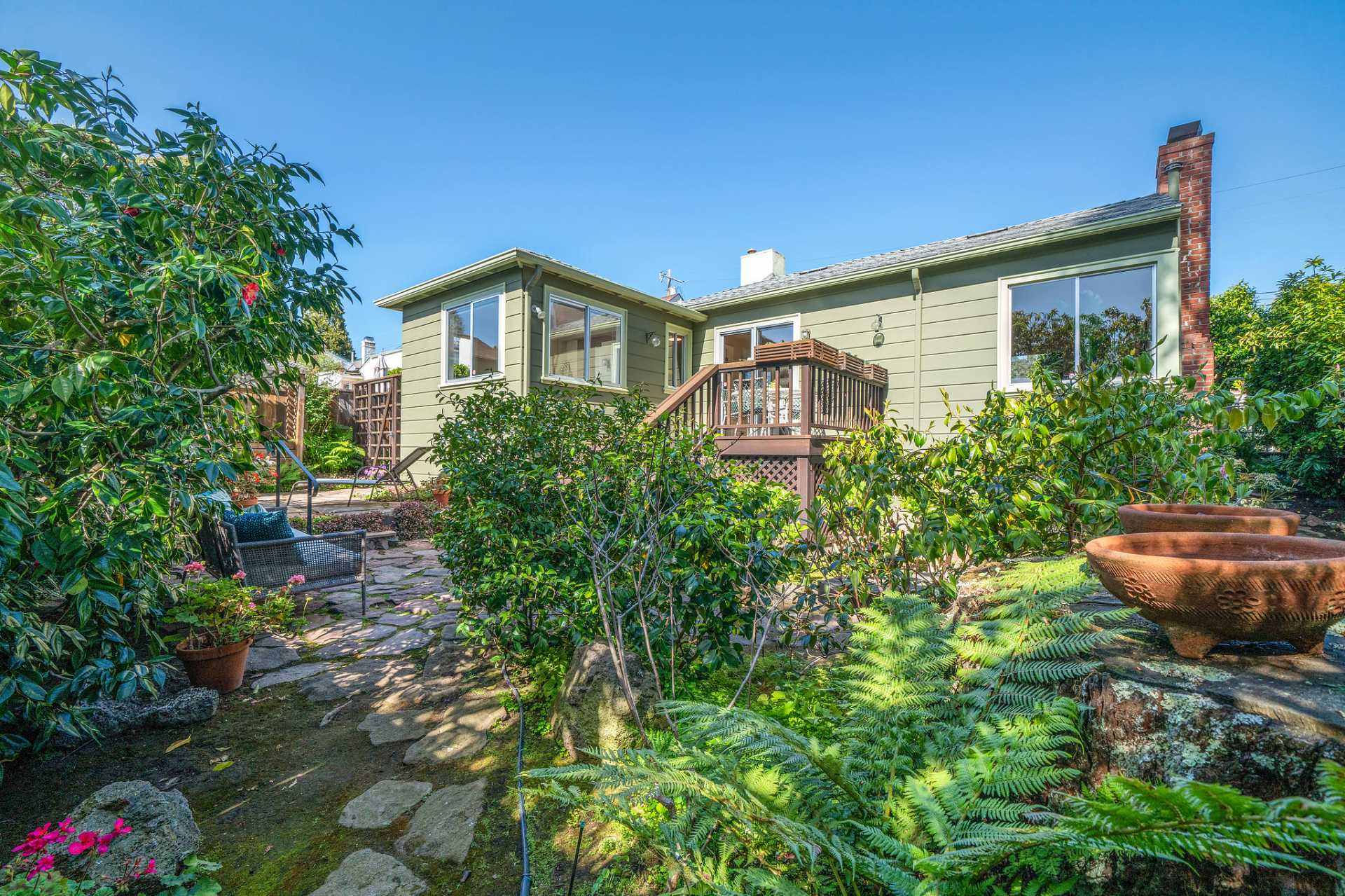Enter the front gate into a private courtyard, then into this gracious and peaceful home. Located in a highly desirable location near Colusa Circle shops and weekly farmers’ market, and just minutes from BART or vibrant Solano Avenue. The living room has random plank hardwood floors, a fireplace, and looks out to the garden. There’s a dining room which opens to a sunny deck, perfect for enjoying your morning coffee or evening beverage. The big kitchen with breakfast nook is a great place to whip up your favorite dinners, and there’s an attached pantry/laundry room. A skylight brightens the hall to the pretty bedrooms. The lush and lovely garden features several sitting areas and is beautifully landscaped for serene enjoyment.