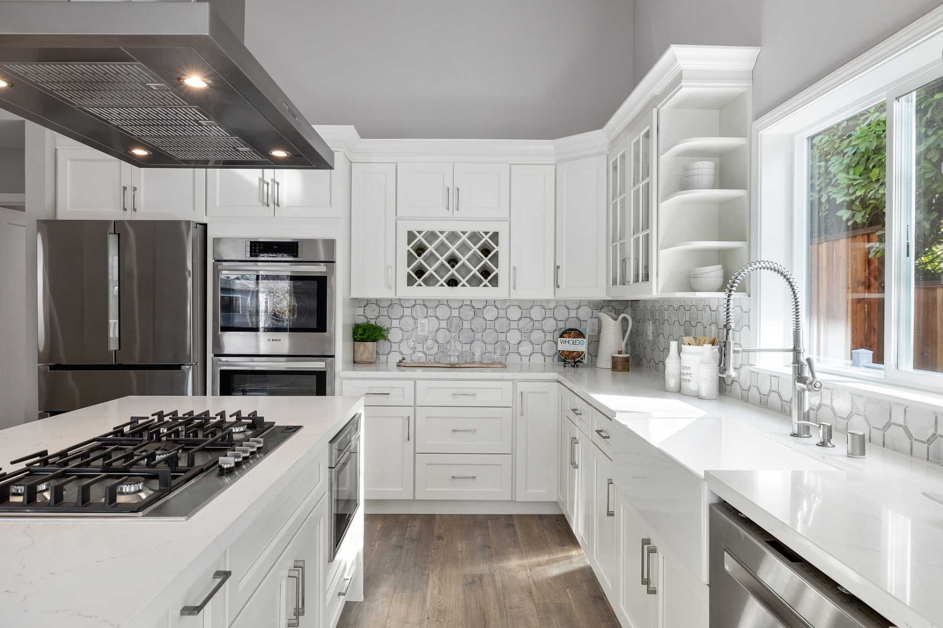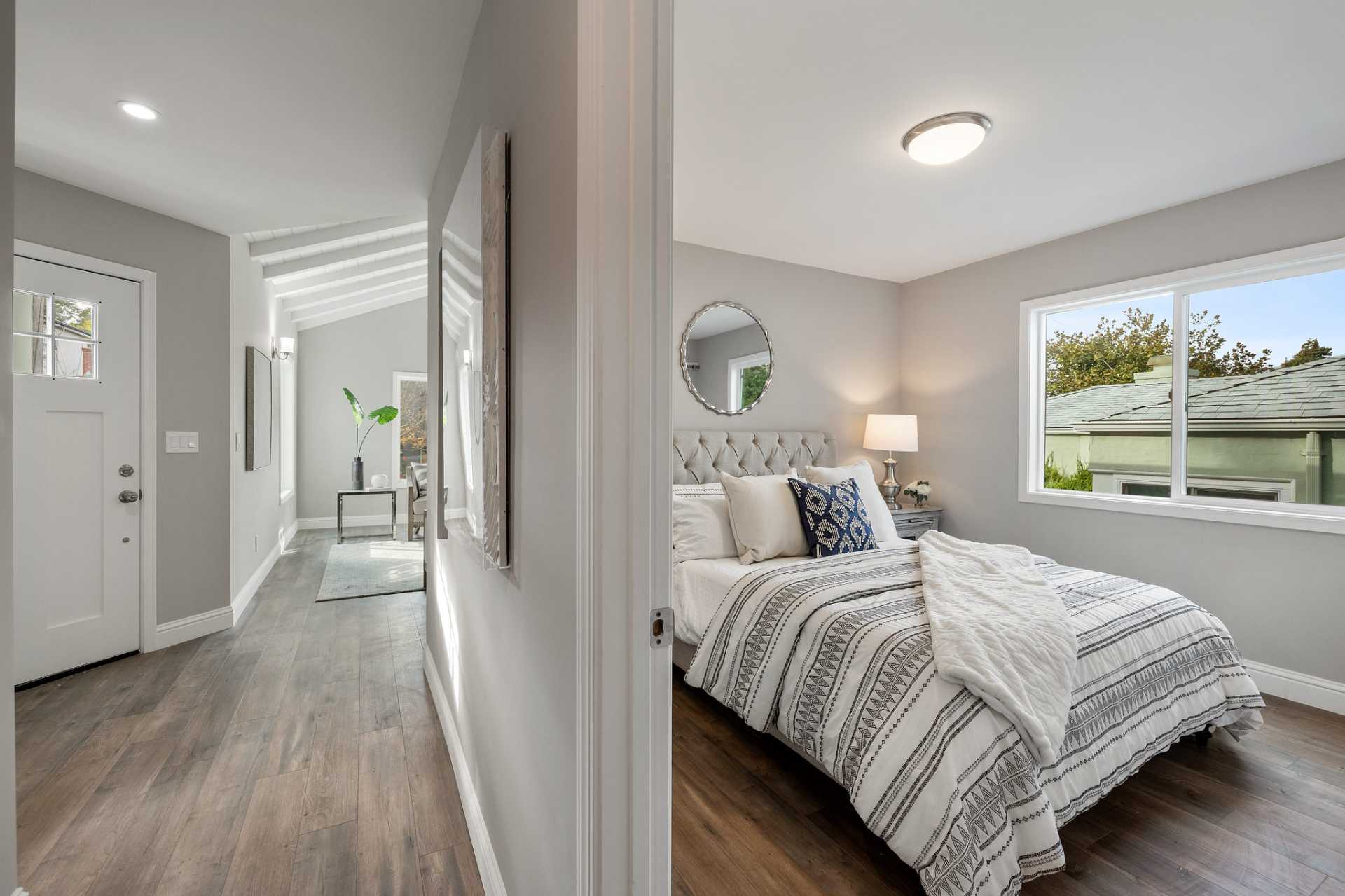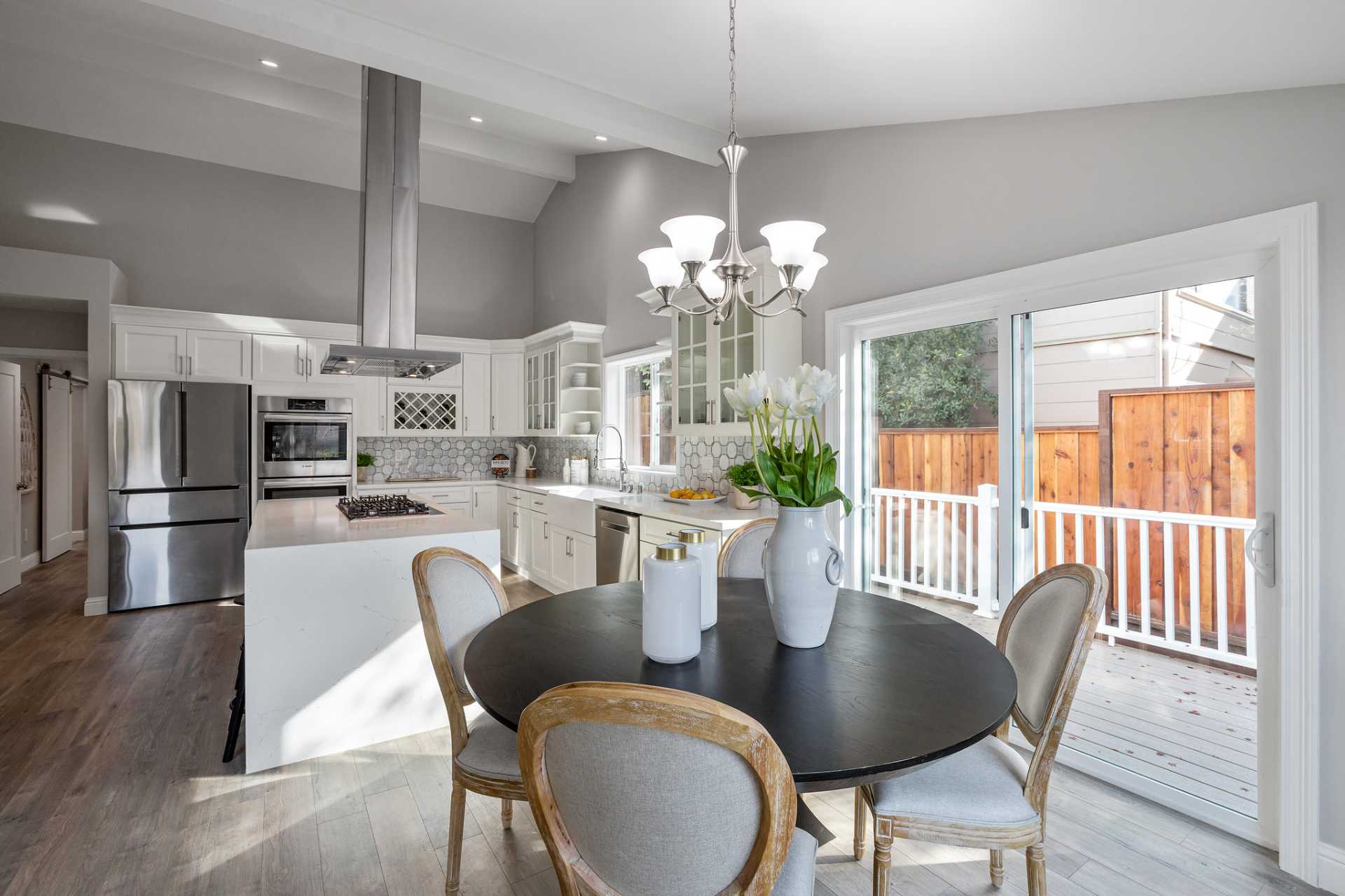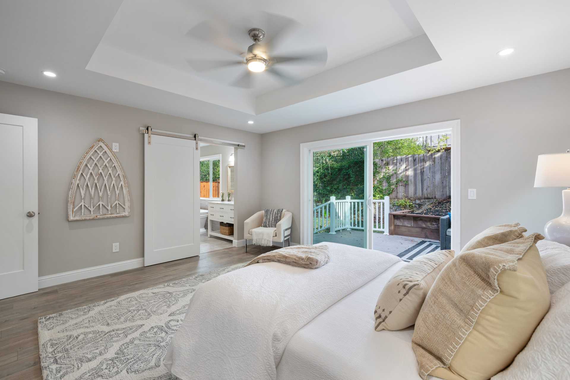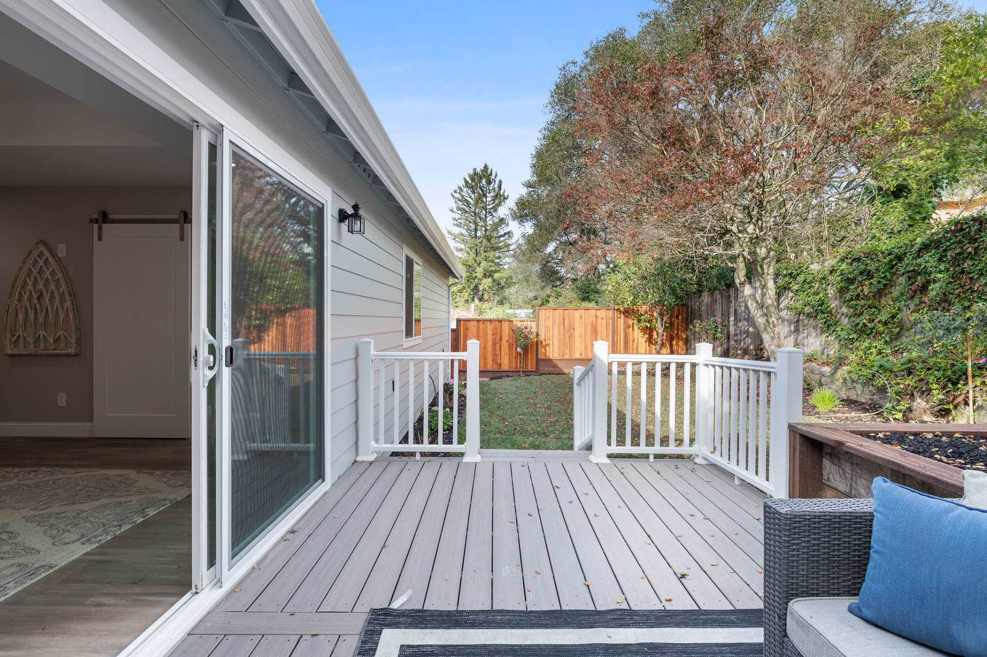 This stunning and spacious home has been redesigned and rebuilt with an added 1311 square feet. All new electrical, plumbing, heating, water and sewer main lines, siding, roof, insulation, windows, doors, floors, French drainage, and landscaping, essentially a new home! The lower level was converted to a 4th bedroom with a private entrance, full bath, private laundry designed for a rental unit or home office, and set up to add a small kitchen. The driveway was expanded for additional parking. The owner combined two separate lots to provide ample outside living, featuring an oversized wrap around deck and yard for entertaining and gardening. Award winning design features went into the home, from barn doors, vaulted ceilings and open and airy floor plan, to the gourmet kitchen and dramatic spa shower with soaking tub. Gourmet kitchen features farm sink, Carrara quartz waterfall-island with gas cooktop breakfast bar and large kitchen eating area. Near trails, shops, parks & buses.