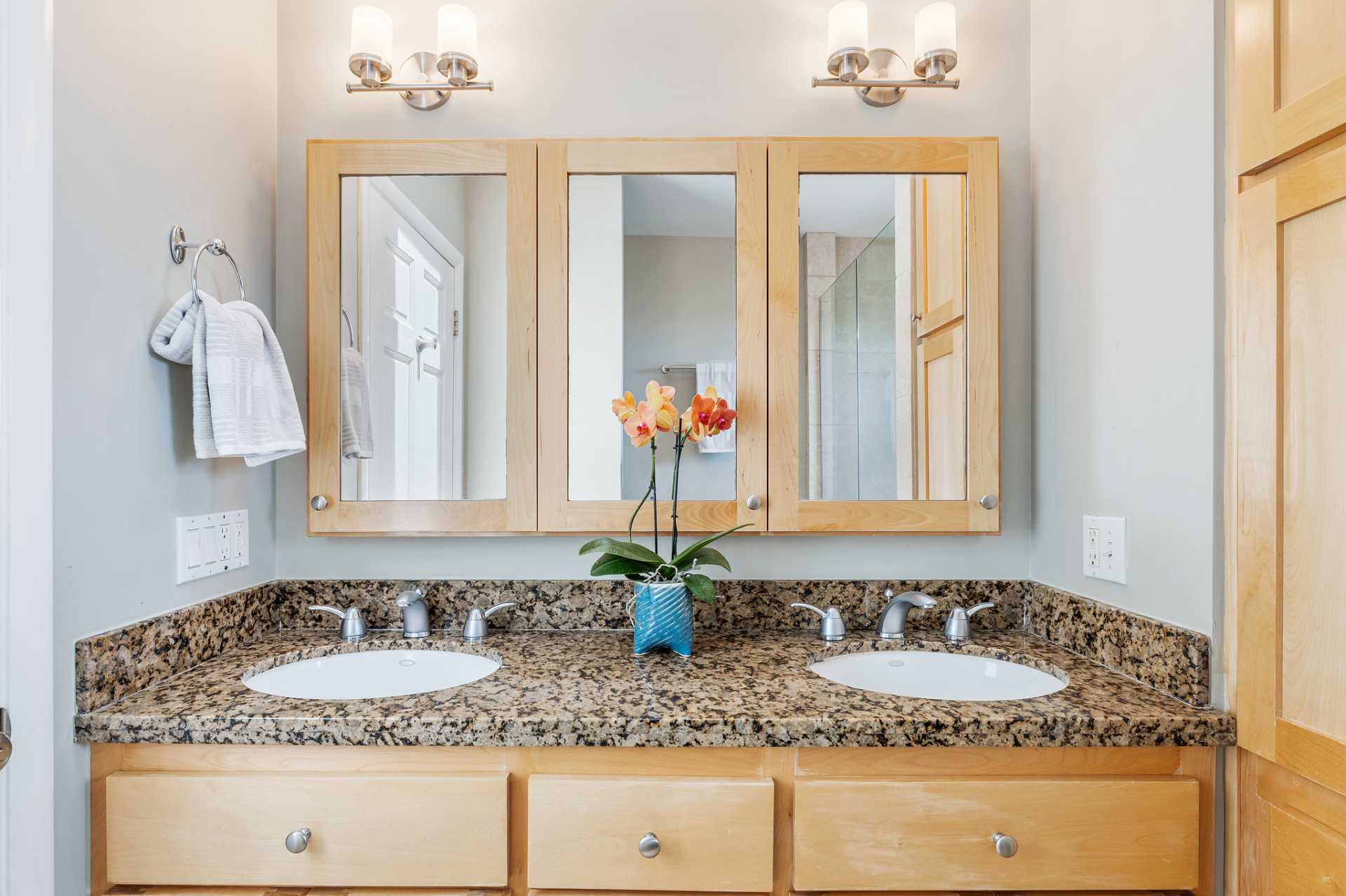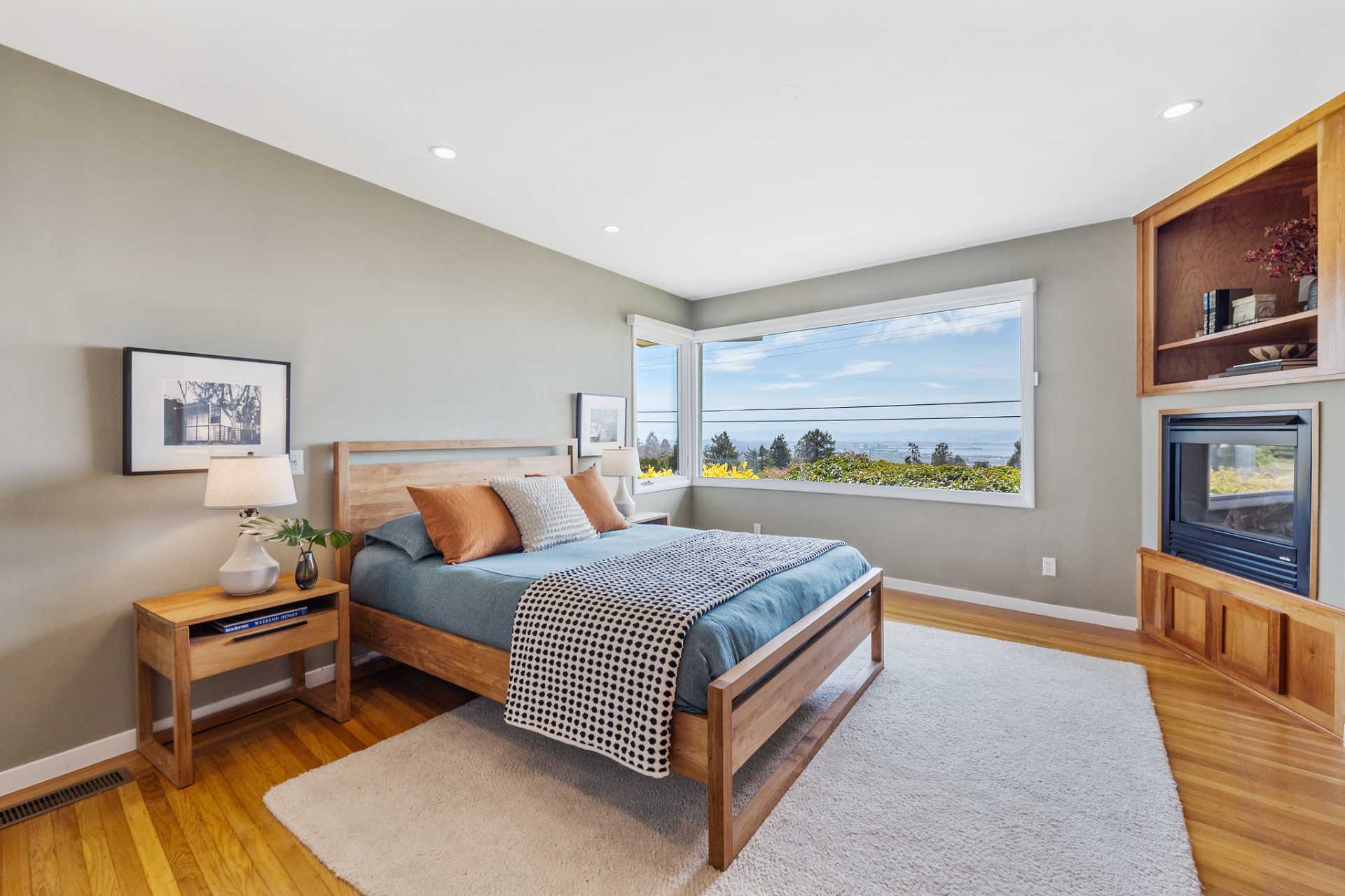 Down the hall and properly secluded from the community spaces you’ll find 3 spacious bedrooms. The primary bedroom with ensuite bath features Bay views and a gas fireplace to stay cozy on those foggy days. Every room has a view of either the Bay or garden!