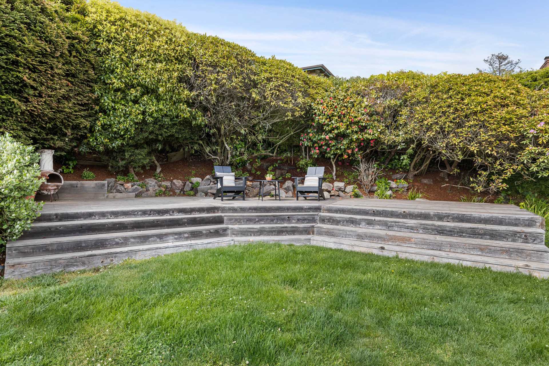 The outdoors is integral to the living space, with a gathering area around the firepit, and a built-in grill for backyard barbeques. Mature Japanese maple and magnolia trees provide just the right amount of shade and beauty, and the upper garden has an open lawn and seating area to enjoy the sunsets from above the house.