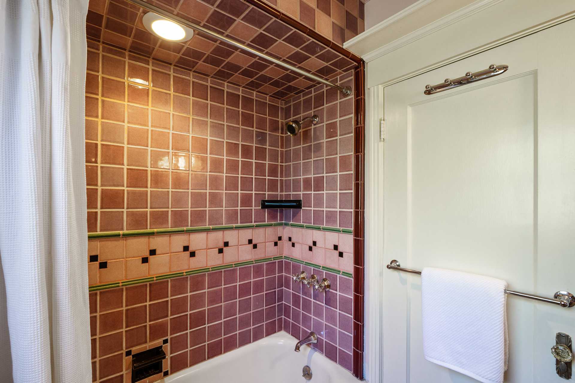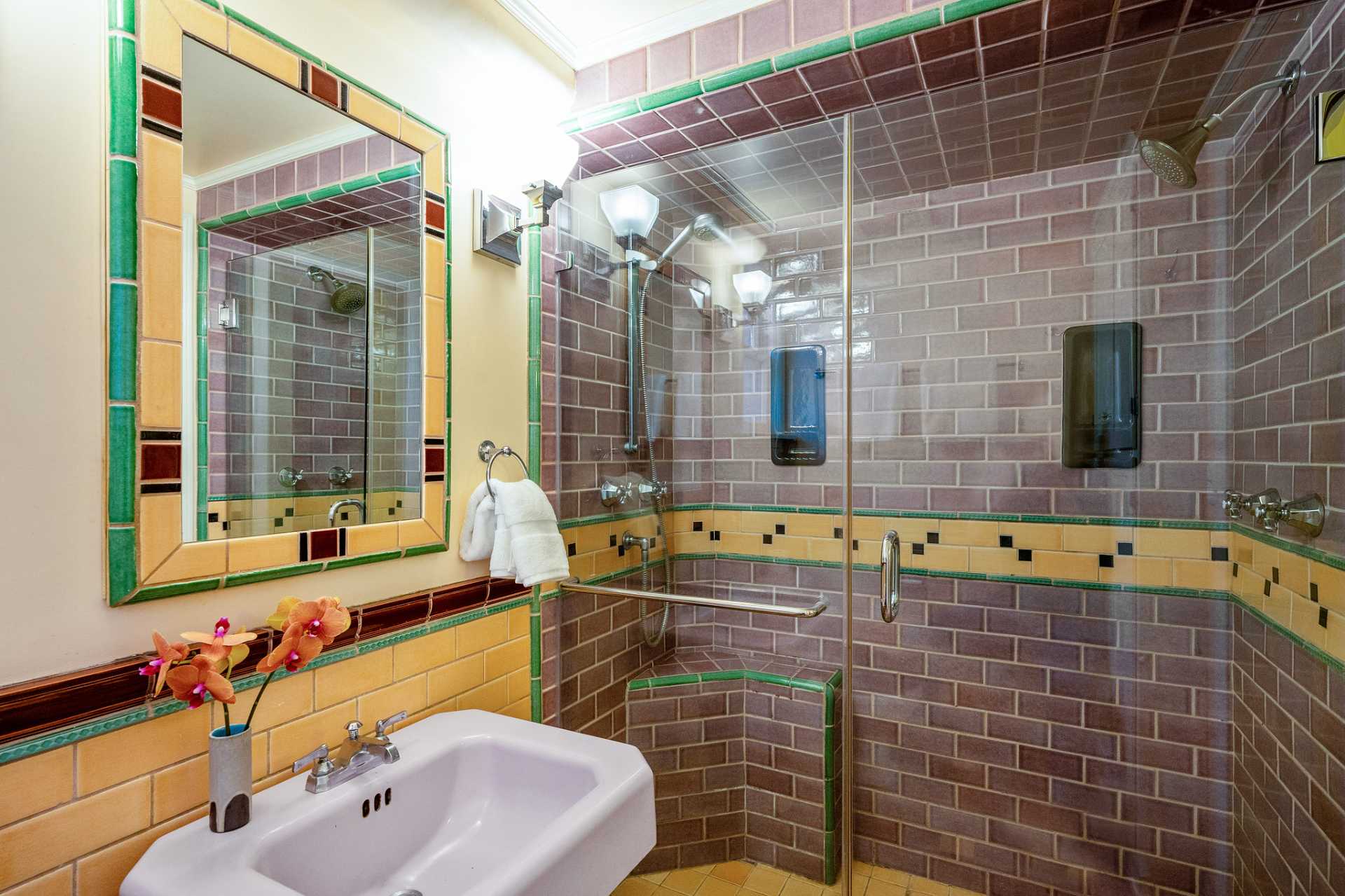 - Two tiled vintage-style bathrooms with double showers