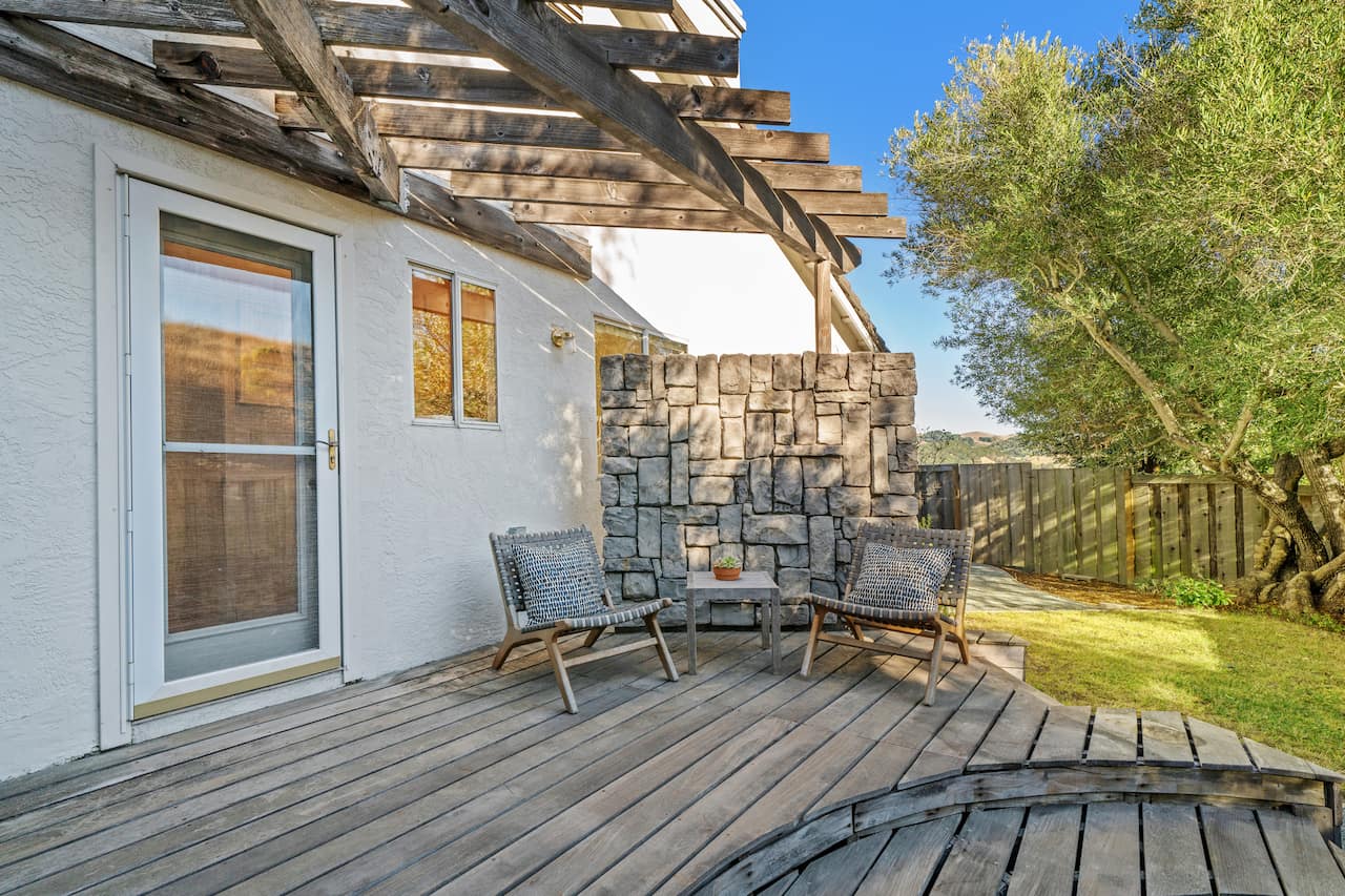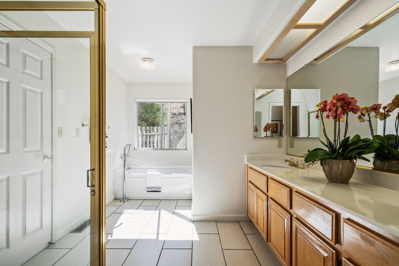 Ready to be home for the holidays? Looking for a large inviting home to host loved ones? Tucked away at the end of a tranquil street, and nestled amongst the hills and trees, 5510 Lenora Road is a peaceful oasis. This 2,400+ sf (per public record) home features vaulted ceilings and sweeping hillside views from the living room, the kitchen, the outdoor decks, and even from the primary suite. Cozy up to the handsome fireplace in the large and open living room, and enjoy an afternoon of gazing at the sun-draped hillscape surrounding you at every turn. The eat-in kitchen has ample counter space, a five-burner gas stove, and plenty of natural light. There is a formal dining room, 4 bedrooms (2 ensuite), and a large 2-car garage. The primary suite features a gas fireplace, 2 large closets, a sun-drenched soaking tub, dual sinks, and a separate shower. Level-out access to the private backyard deck at the end of the hall is perfect for al fresco dining. Fruit-bearing olive trees and expansive tiered decks surround the home, connecting the backyard to the front with a meandering and magical garden path. Close to popular recreation spots like Kennedy Grove Regional Recreation Area, Wildcat Canyon Regional Park, San Pablo Reservoir, and Tilden Nature Area, this home is a nature lover's dream. Approximately 6 miles to del Norte BART, or 9 miles to Orinda BART, you can access what you need in any direction. Includes access to a private gated park with a playground and picnic area at the other end of Lenora Road just a few short blocks away. EV charger in the garage.