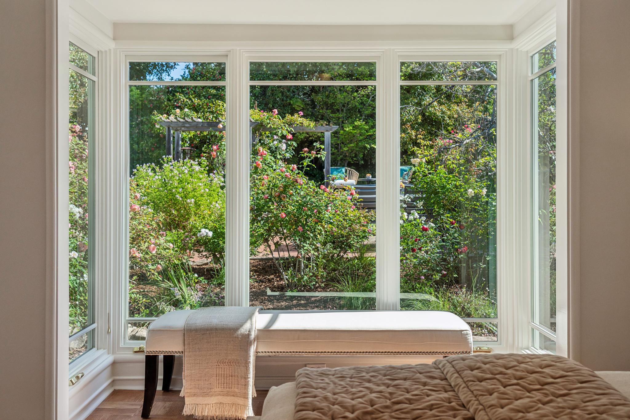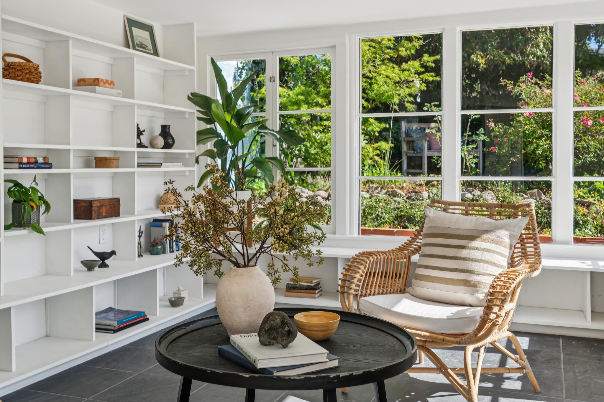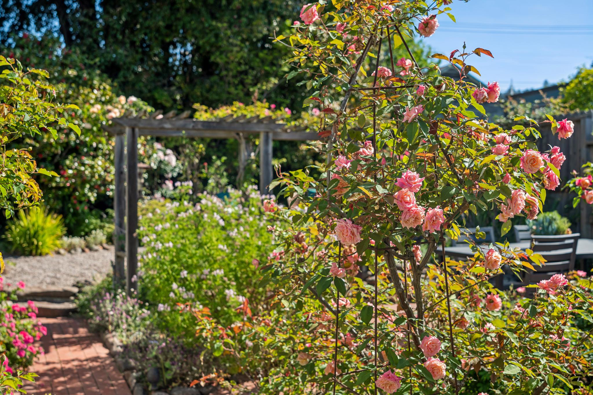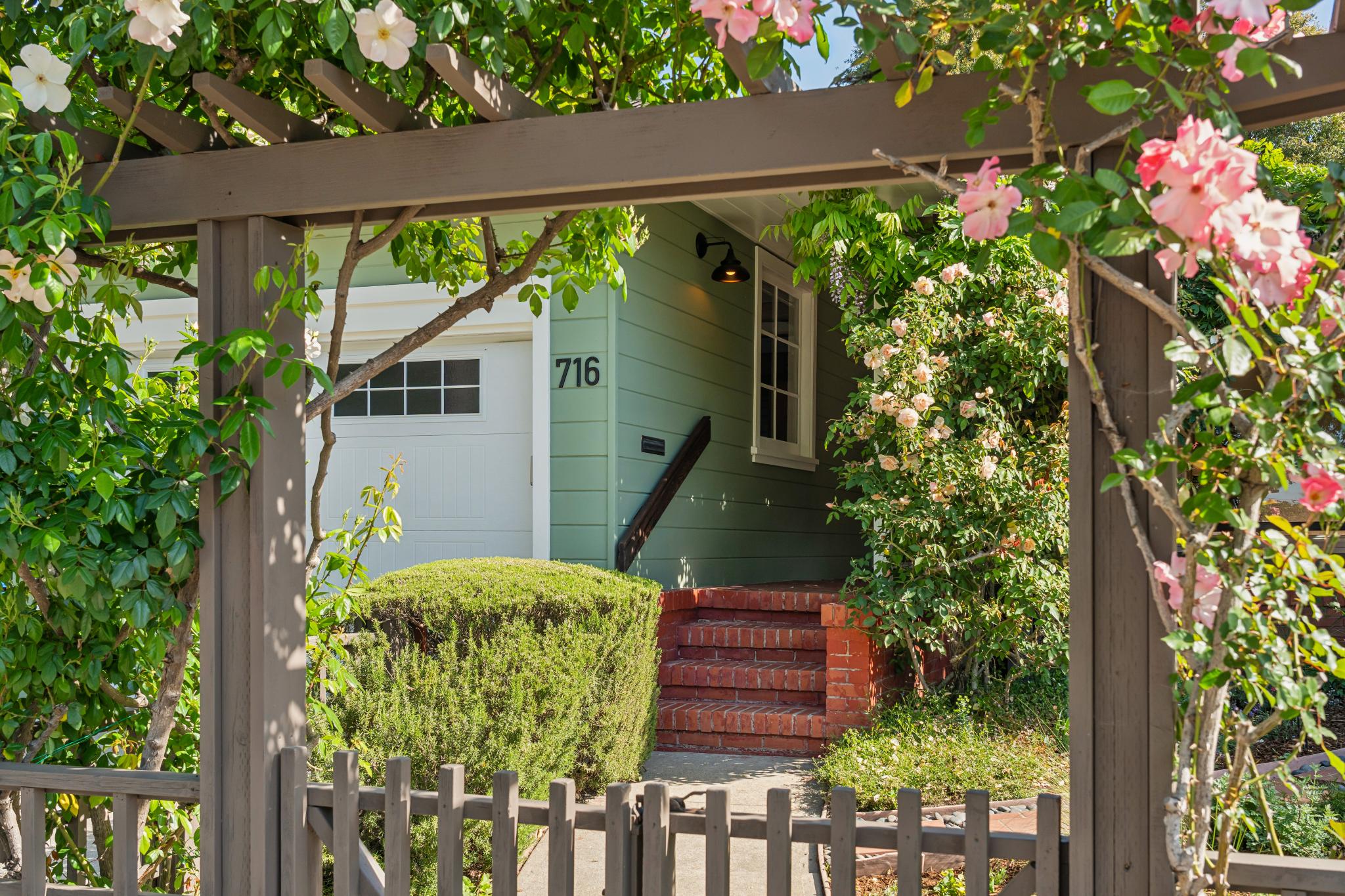 From the sidewalk you enter the garden through a wooden gate and immediately you’re greeted by rambling soft yellow roses and flowering Wisteria vines. The covered porch provides a peaceful transition from the street into the tranquil home. Windows with views to the garden can be found in every room. The gracious living room and dining room are generously sized to comfortably gather with friends and family. A sweet vintage tiled kitchen has direct access to the back porch and meandering garden. Two light-filled bedrooms down the hallway and charming original tiles in the bathroom add to the enchanting character of the home. The primary bedroom has a large garden window connecting the room to the idyllic backyard. Just through the kitchen door on your way to the garden, you can’t miss the garden cottage, with 2 window-filled walls and a fireplace, it’s the perfect spot for art or play come rain or shine. Measuring 286sf, this bonus space invites your imagination.