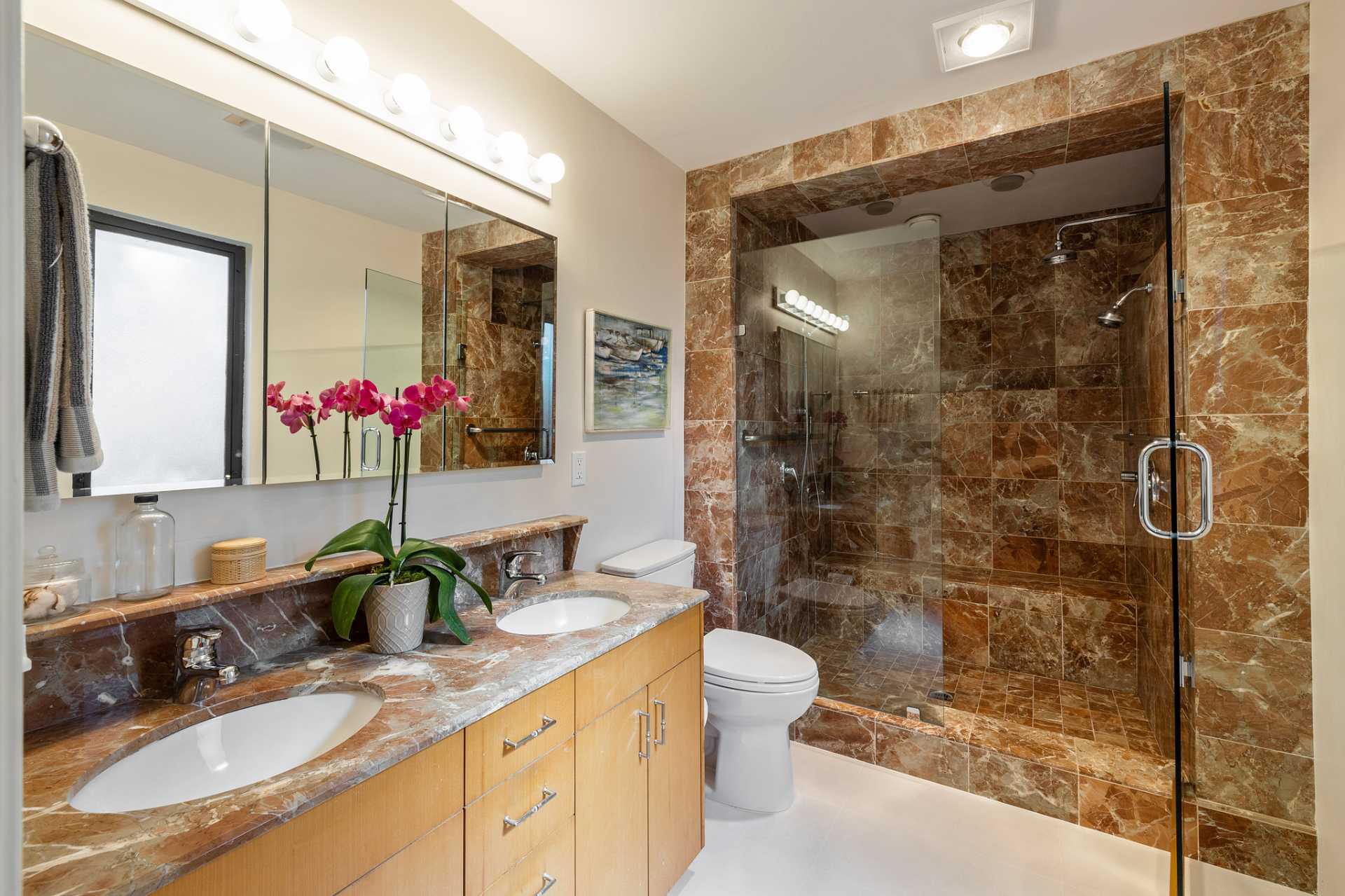 - Primary suite with luxury walk-in shower with 2 shower heads and double sinks