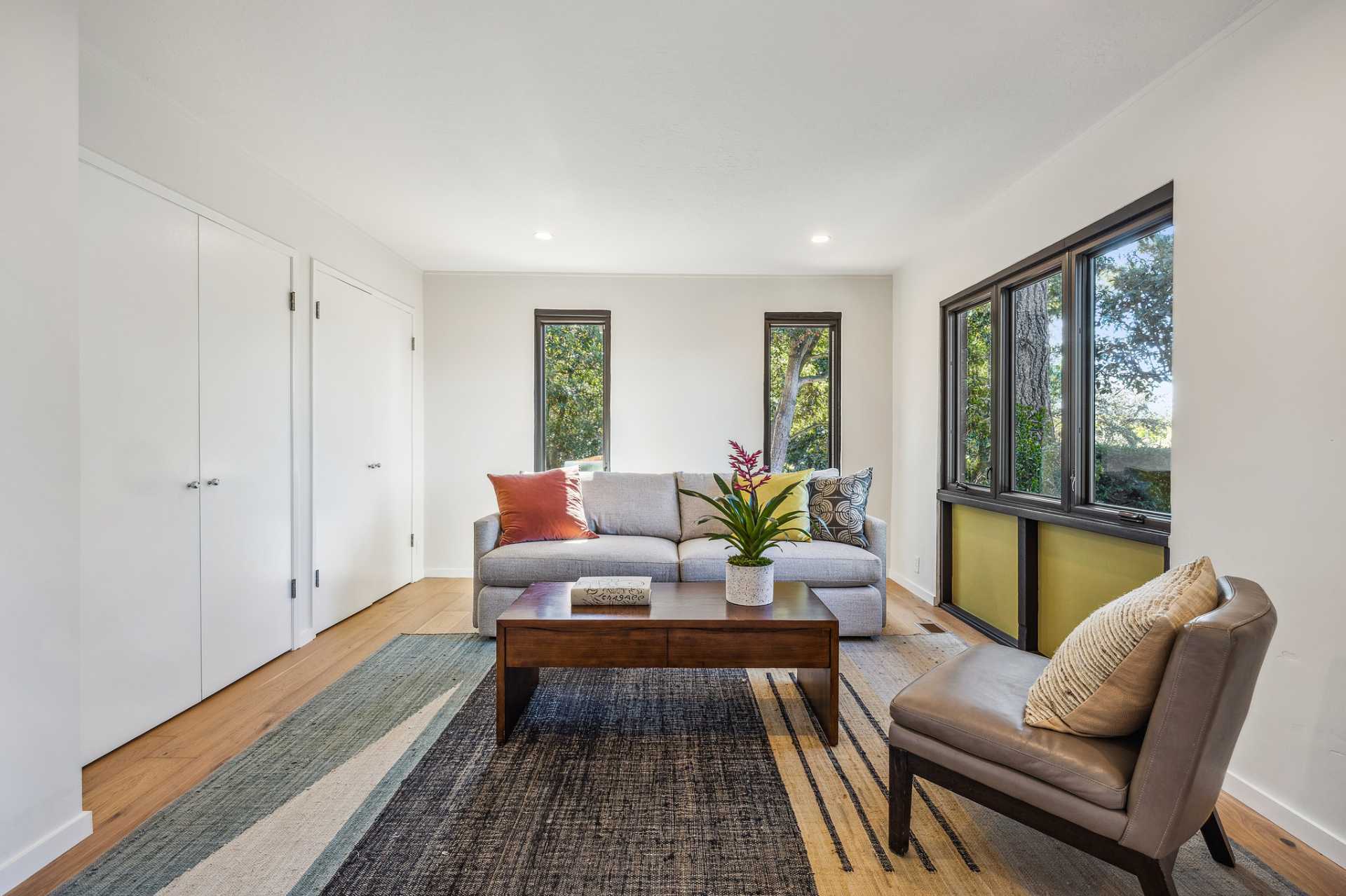 - 4 bedrooms – 4th bedroom staged as a family room, opening to a patio and garden