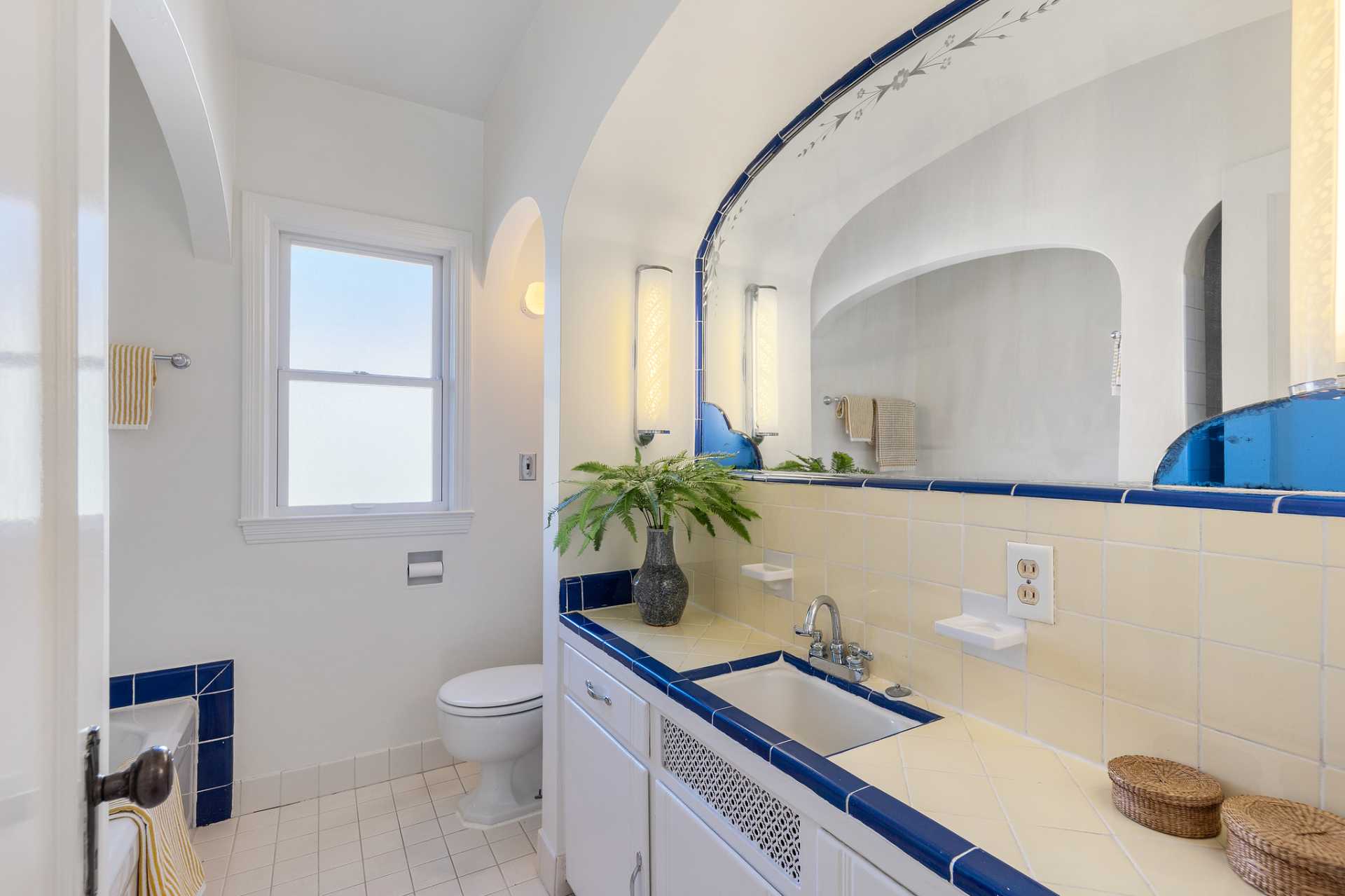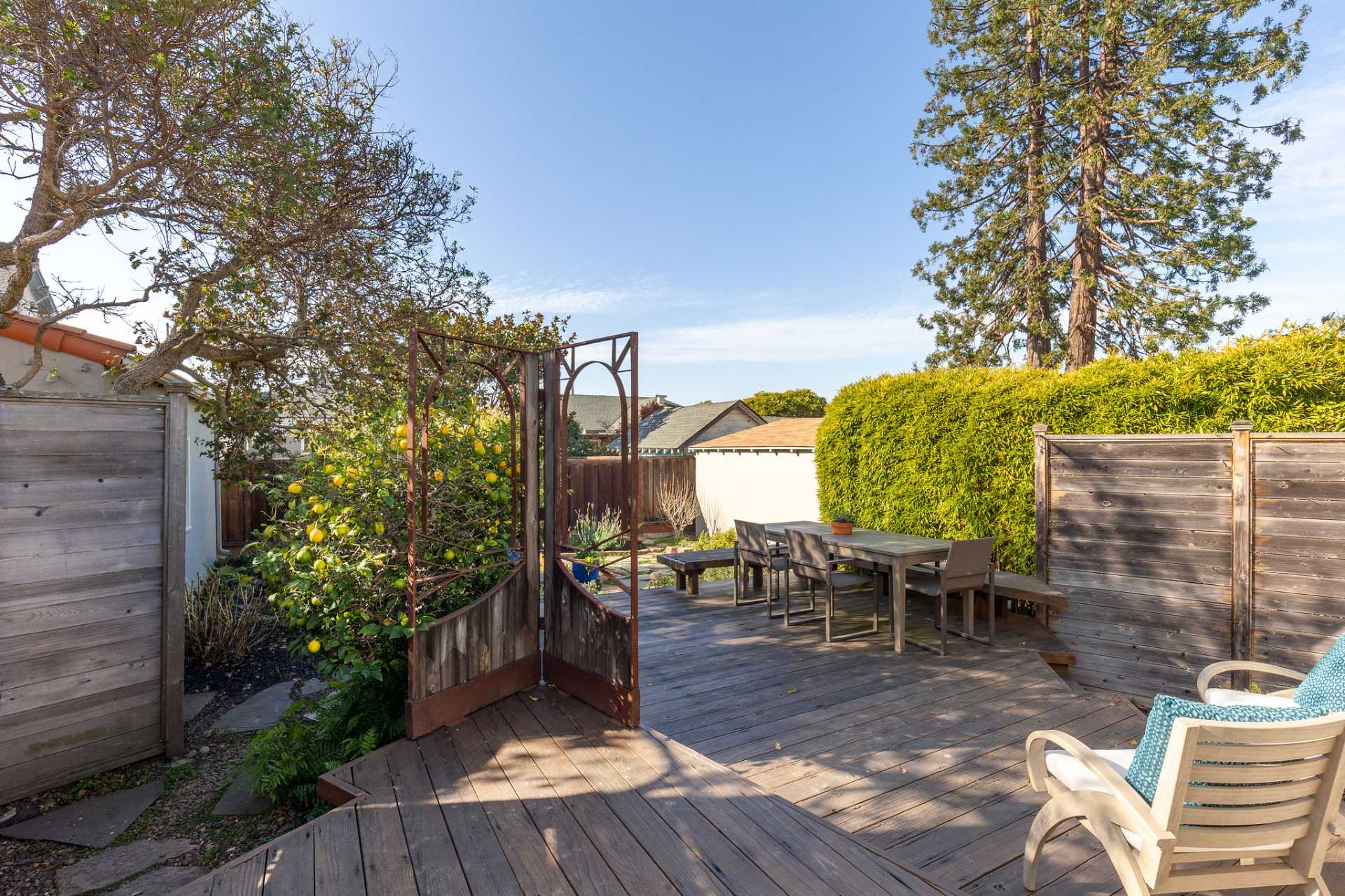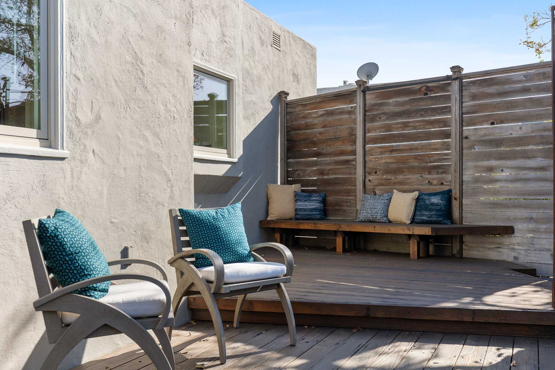 Bring back summer in this sun-splashed Mediterranean-style bungalow, with all one-level living on a highly coveted tree-lined street. Charming architectural details and vintage style meet thoughtful upgrades such as dual-pane Marvin windows, updated kitchen cabinetry with soft close drawers designed to look like the originals, a tiled countertop bathroom with separate tub and shower, and a glamorous vintage vanity mirror. Oversized custom picture windows in the living room and front bedroom preserve the 30s charm without compromising modern standards. Unique features such as the barrel ceiling, arched doorways, bullseye window in the front entry, sweet vintage light fixtures, and gorgeous hardwood floors all combine to create a welcoming and embracing atmosphere. From the kitchen head out onto the expansive deck with built-in benches for al-fresco dining and outdoor privacy.